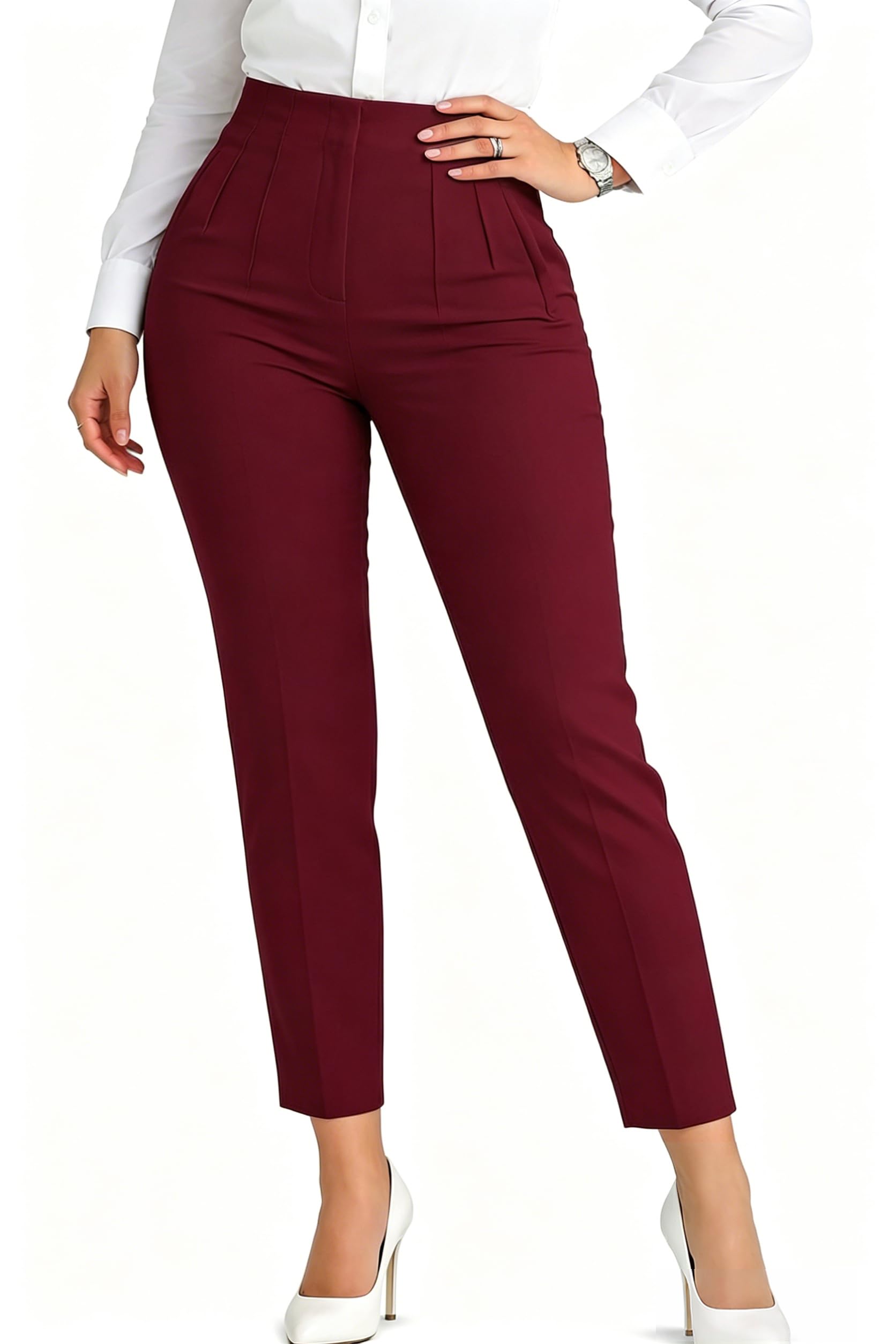 LOVESHOOT Womens Stretchy Dress Pants 2026 Trendy High Waisted Pleated Straight Leg Business Work Casual Trousers