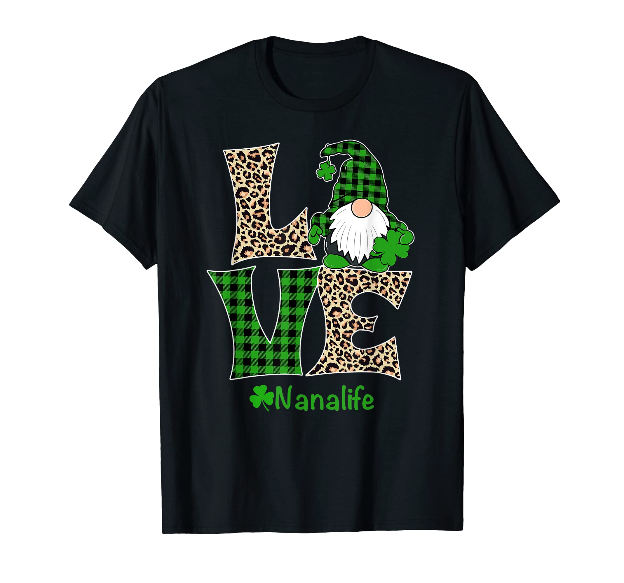 Love Nana Life Shirt St Patricks Day Lucky, Shamrock, Leopard, Green Plaid, Nana Gnomes Design Clothing St Patrick's Day gift idea for your Nana. Irish Nana tshirt. St. Patrick's Day Gnome t-shirt. St patrick's day Nana shirt. A cool matching outfit for your women, men, boys, girls, kids, family and