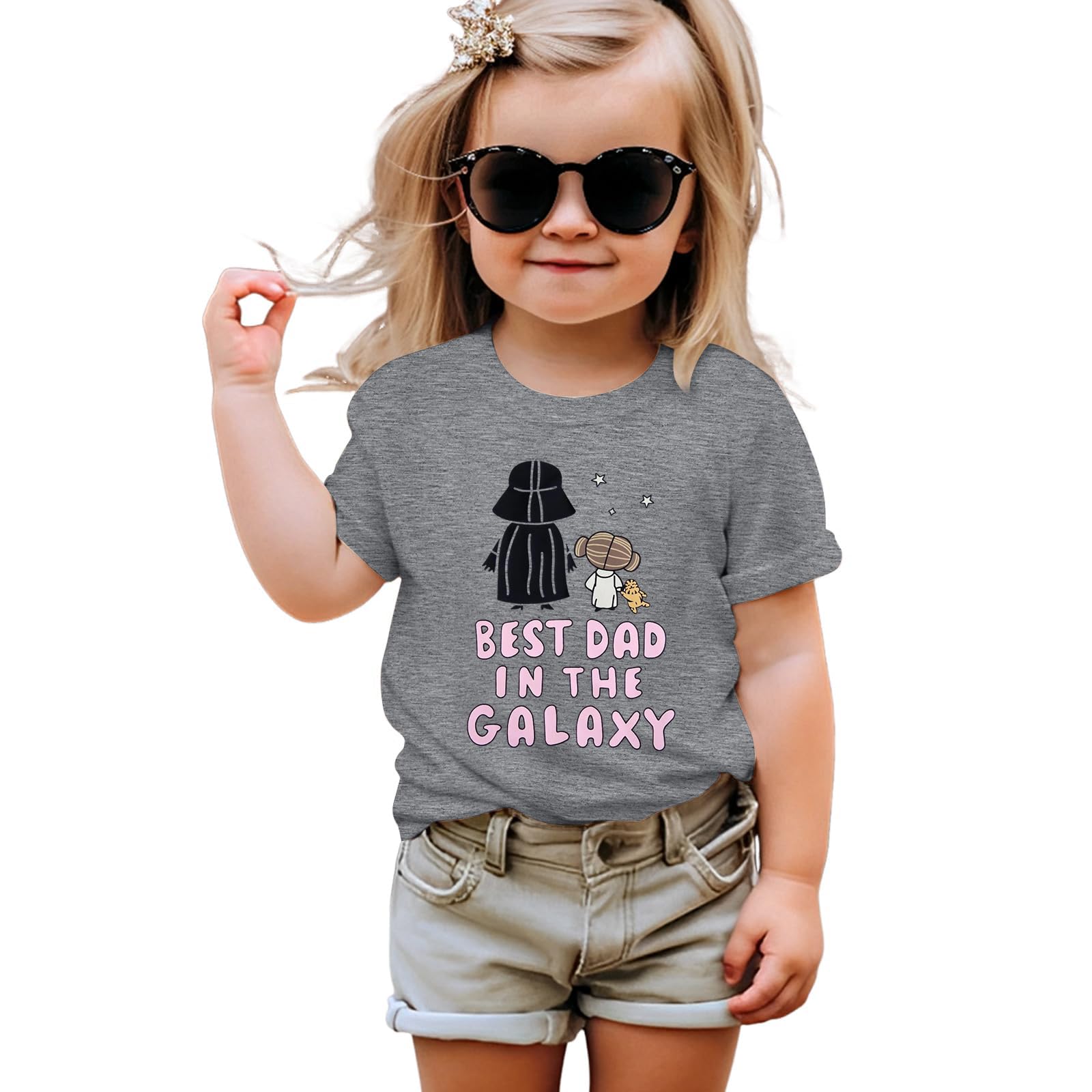 Yawtaut Toddler Girls Shirts Best Dad in The Galaxy T-Shirt Daddy’s Princess Graphic Shirt Baby Short Sleeve Tee Tops