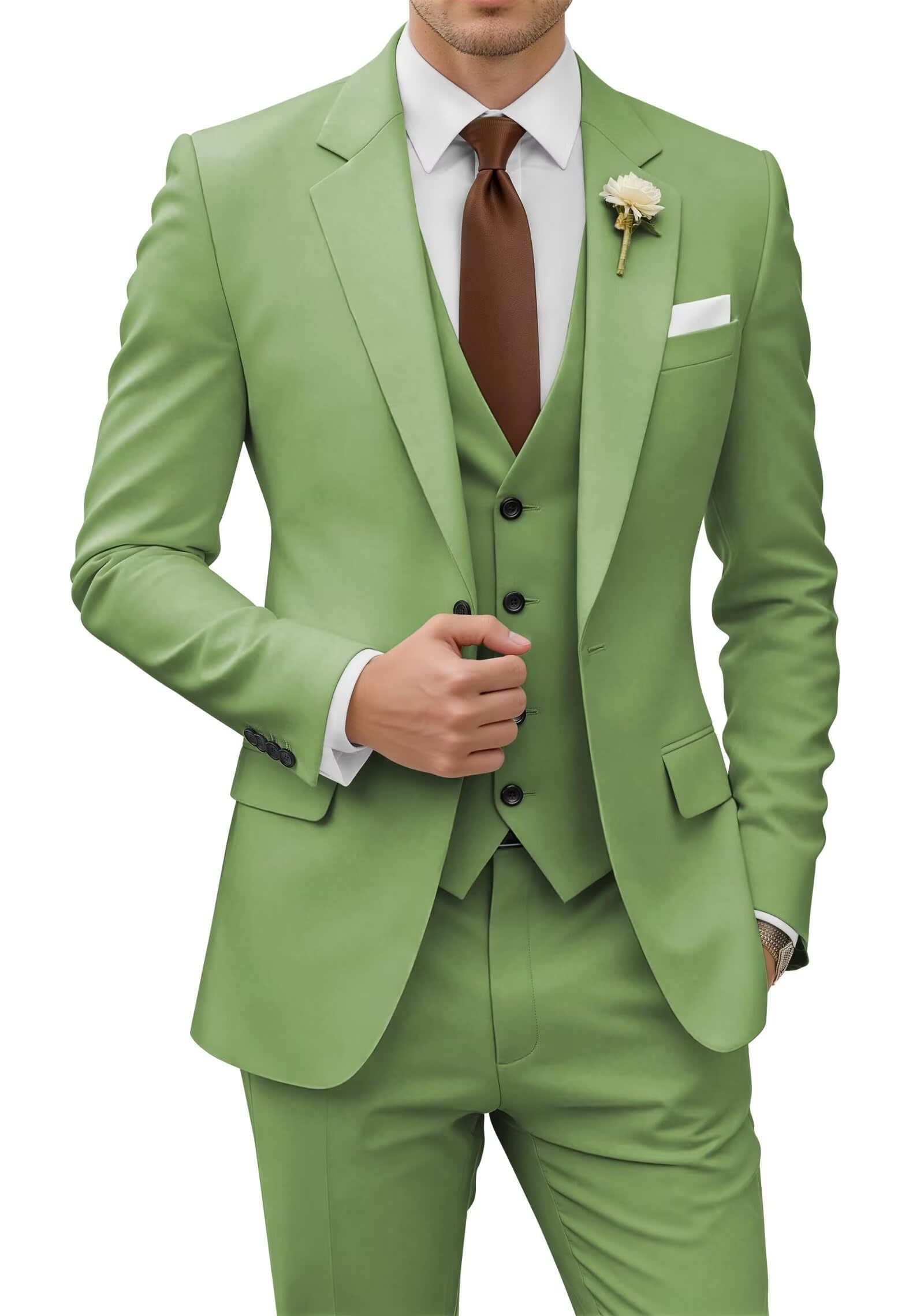Wangyue 3 Piece Suit Men Slim Fit Wedding Suits for Men Mens Elegant Suits Notch Lapel Blazer Single Breasted Vest and Pants