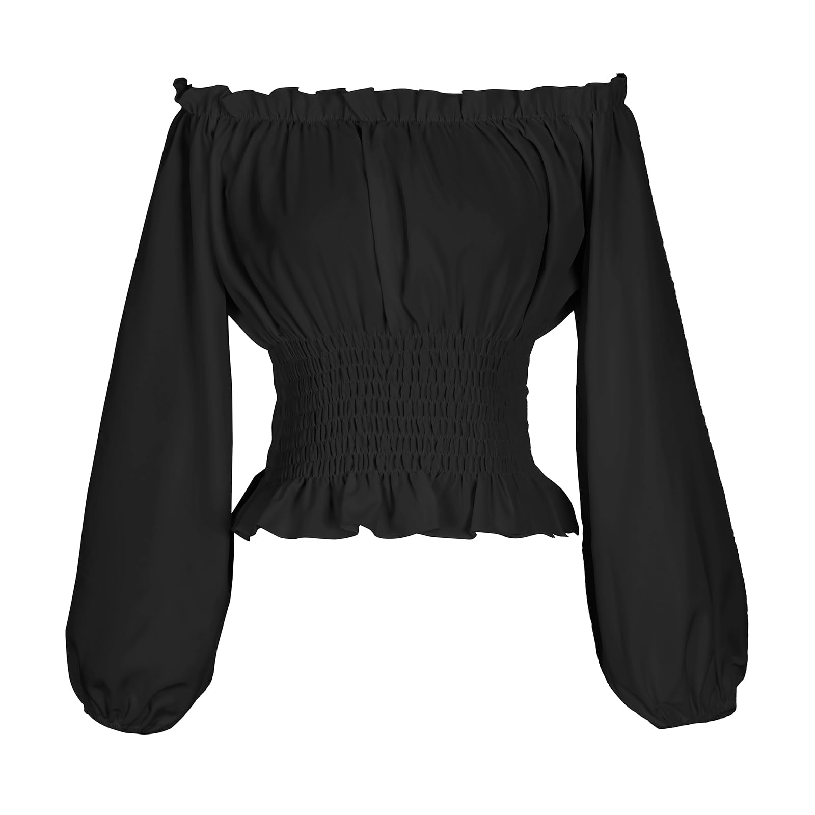 Renaissance blouse, peasant tops. Puff sleeves and waist have elastic ruffle details. Sexy off shoulder ruffle edge crop top women's Renaissance style blouse. Renaissance blouse can be paired with different clothing. Such as women's tight corsets, jeans, skirts, pirate costumes, cosplay costumes, et