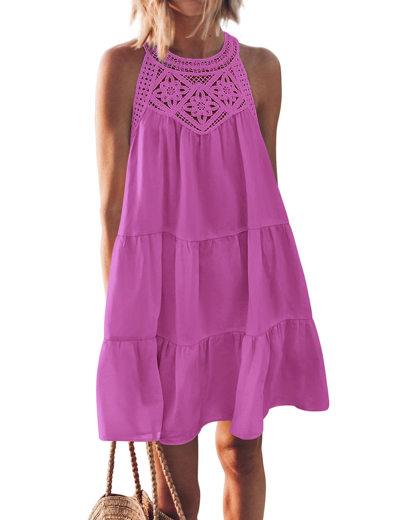 SWEET TIP: For Light-Colored Dresses Like White, Which May Be Slightly Sheer, Opt For Nude Or Light-Toned Underwear / Sleeveless Halter Dresses For Women / Beach Dresses For Women / Hollow Out Sun Dresses Women / Tiered A Line Dresses / Swing Sundresses For Women / Button Keyhole Back / With Lining
