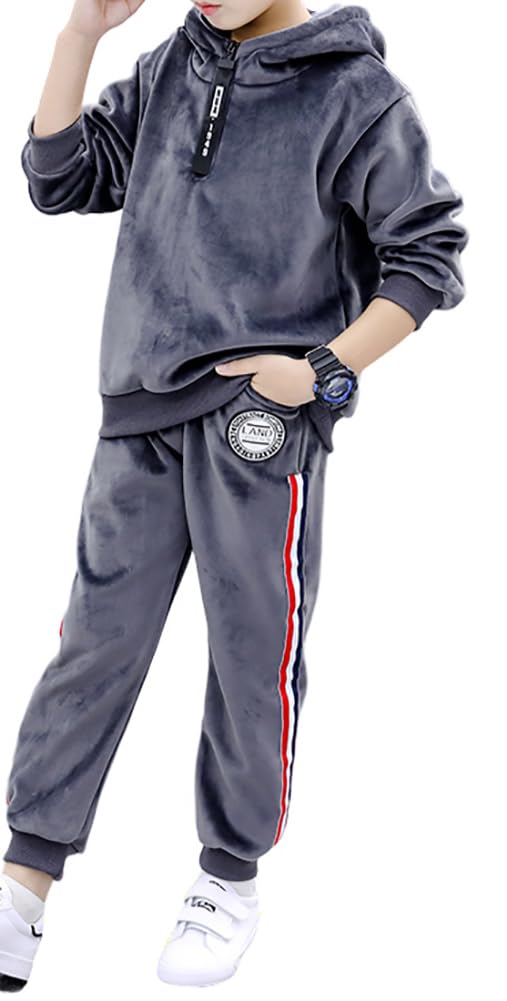 Monvecle Little to Big Boys' Velour & Fleece Hoodie Tracksuit Sweatshirt Top + Sweatpant Velvet Fleece Jogger 2pcs Set