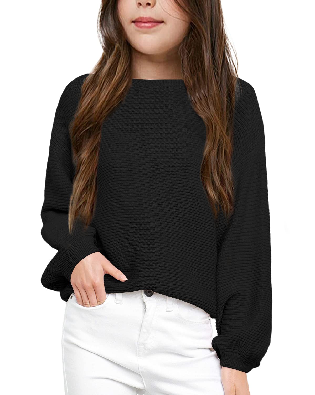 Girls Pullover Sweaters Kids Long Sleeve Drop Shoulder Sweaters Casual Boat Neck Knit Jumper Tops