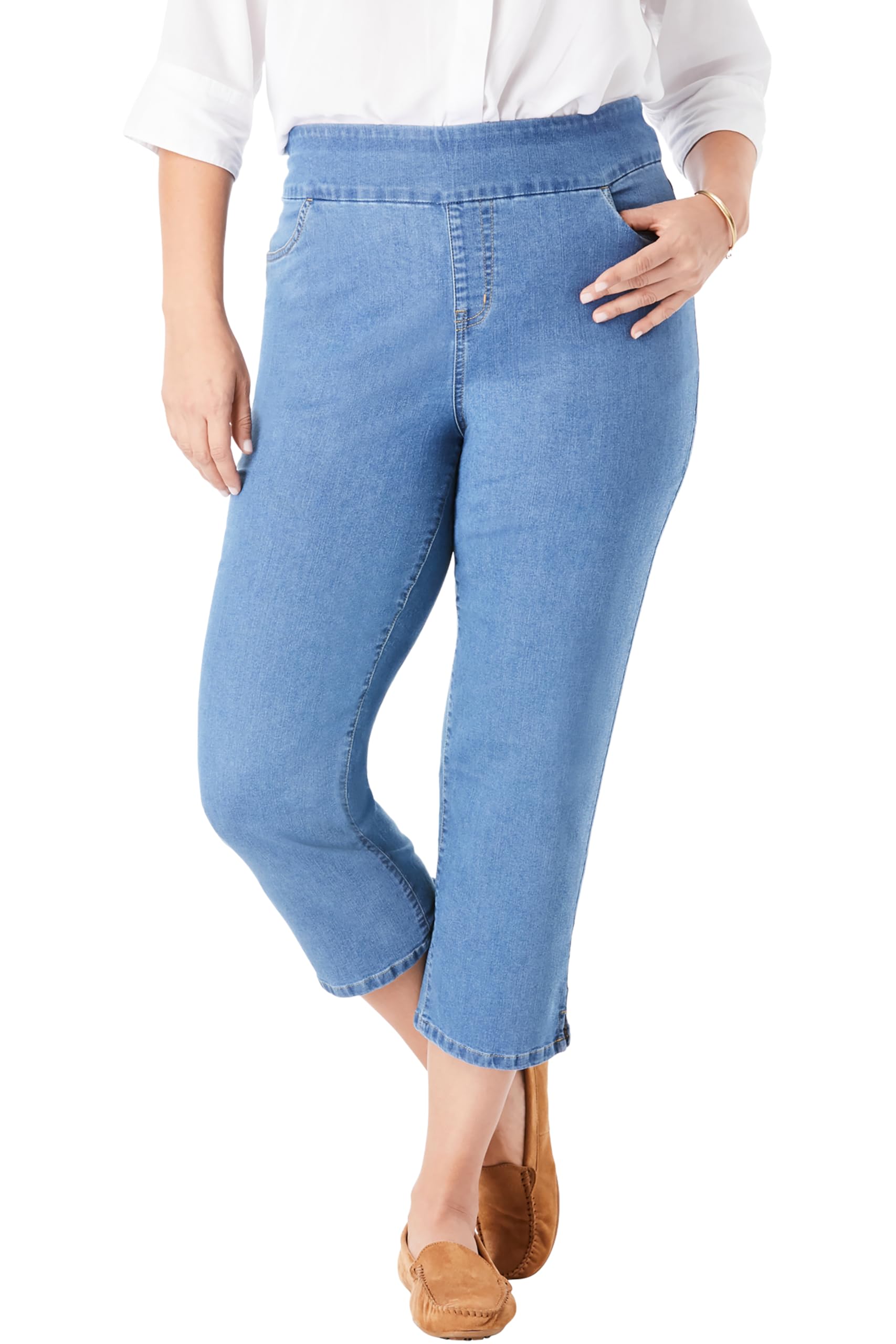 Woman Within Plus Size Pull-On Flex Elastic-Waist Stretch Denim Capri Jeans