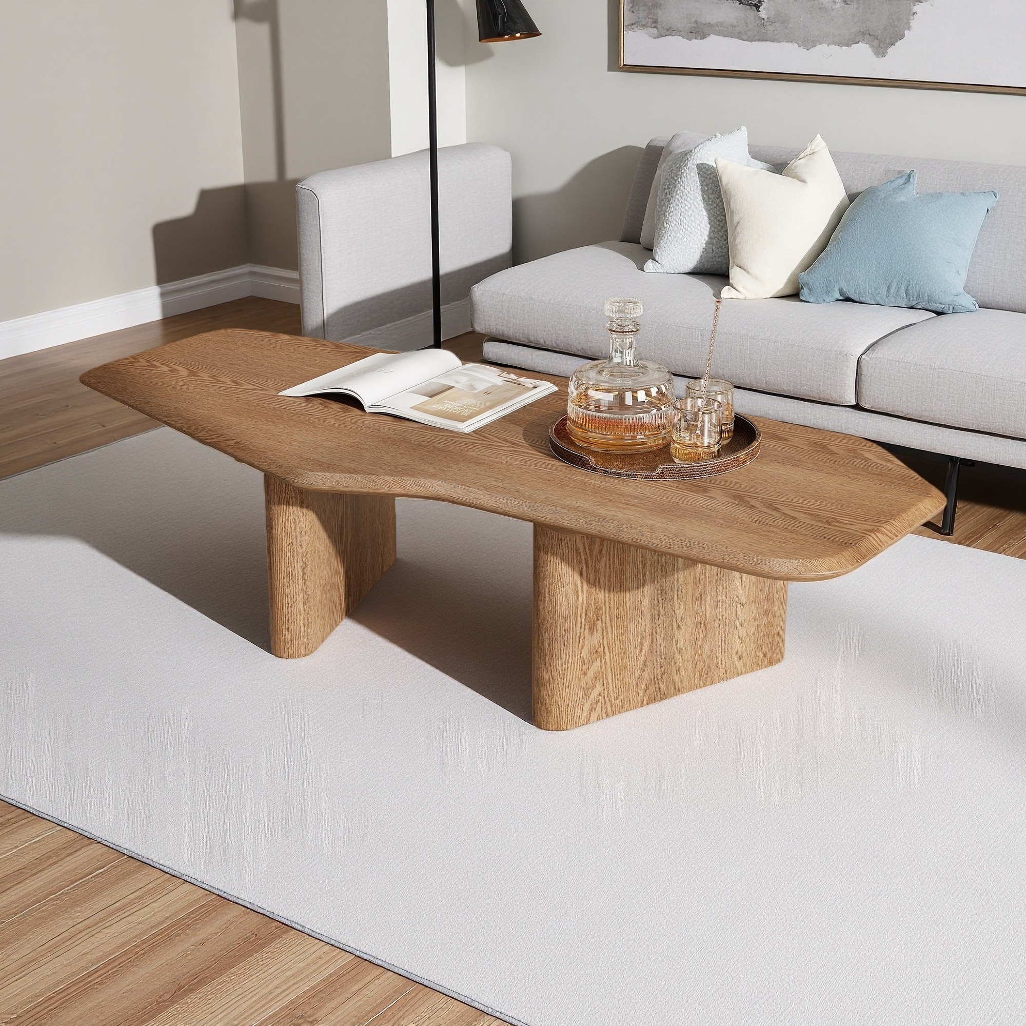 47.2" Ash Wood Veneer Free Form Coffee Table with Rustic Style and Small Space Design for Living Room