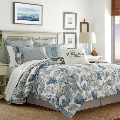 Sleep beneath a lush tropical canopy with the Raw Coast Comforter Bedding from Tommy Bahama(R). Oversized comforter features painterly watercolor tropical leaves in indigo, sky blue, steel blue, pale blue, khaki, and natural on off-white cotton....
