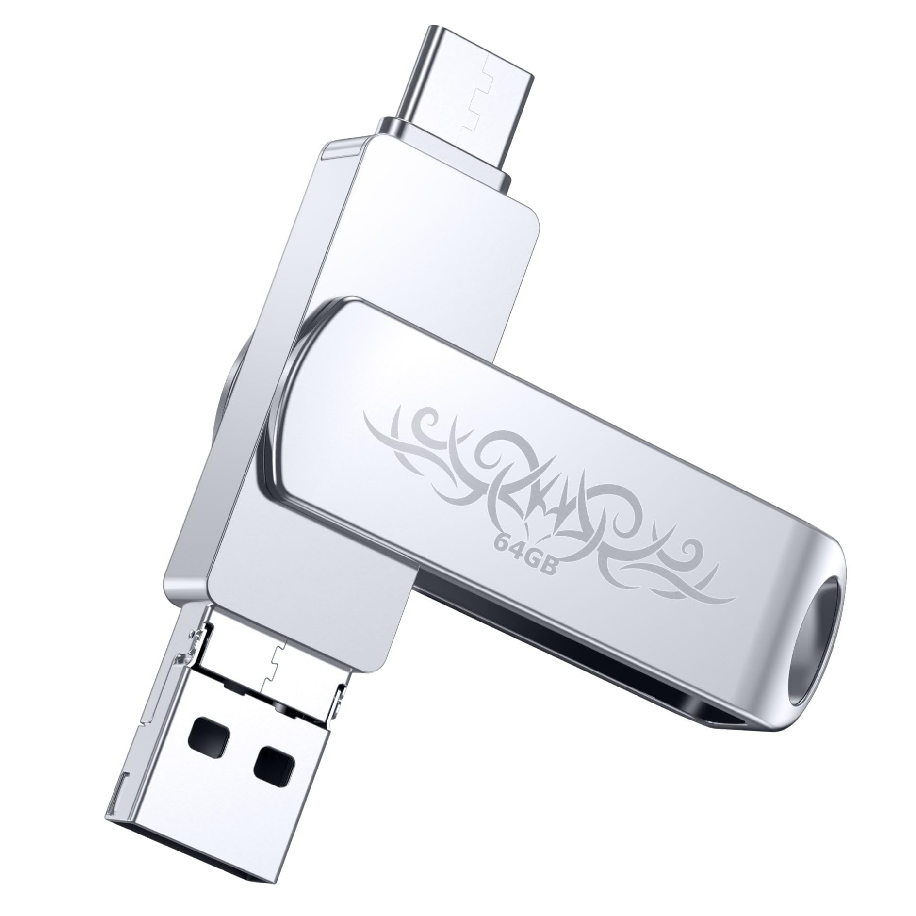 Flash Drive for iPhone with 64GB Transfer Photos Files in Among iPad Android Galaxy Phones PC Mac FYRIS Thumb Drives 3in1 with USB, USB C & Lightning