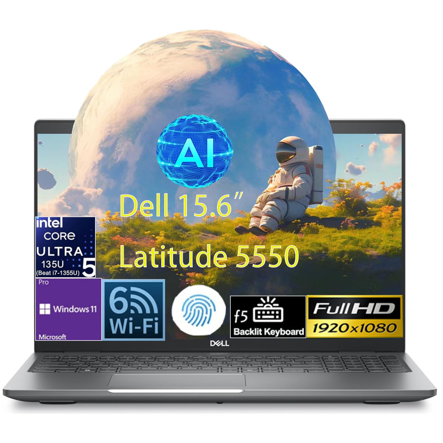 Dell Latitude 5550 15.6" FHD Business Laptop, Intel Ultra 5 135U (12-Core, Beat i7-1355U), 16GB DDR5 RAM, 1TB SSD, WiFi 6, Bluetooth, Backlit Keyboard