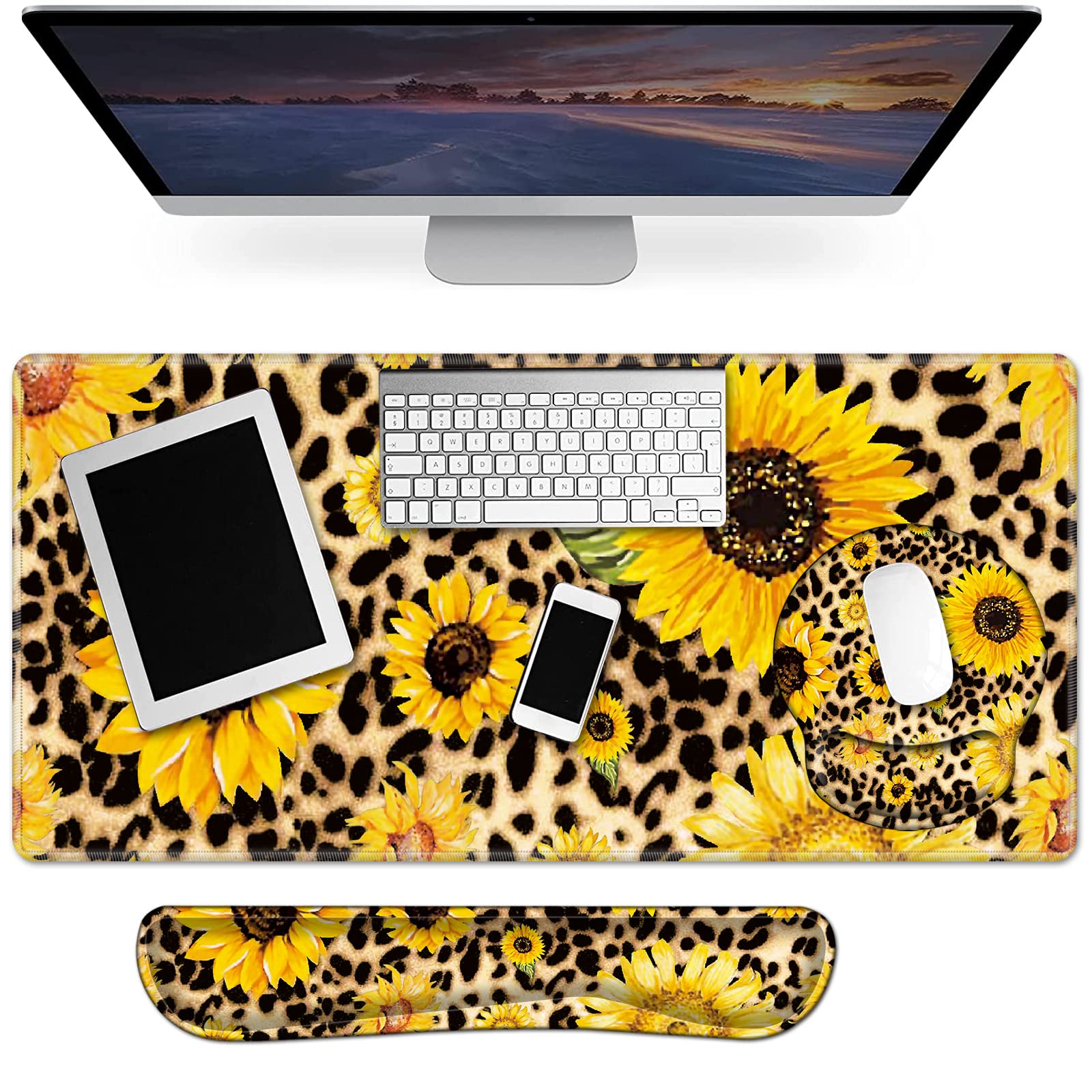 3 in 1 Full Desk Mouse Pad and Keyboard Wrist Rest Set, Extended Gaming Mouse Pad + Ergonomic Keyboard and Mouse Mat with Soft Memory Foam Wrist
