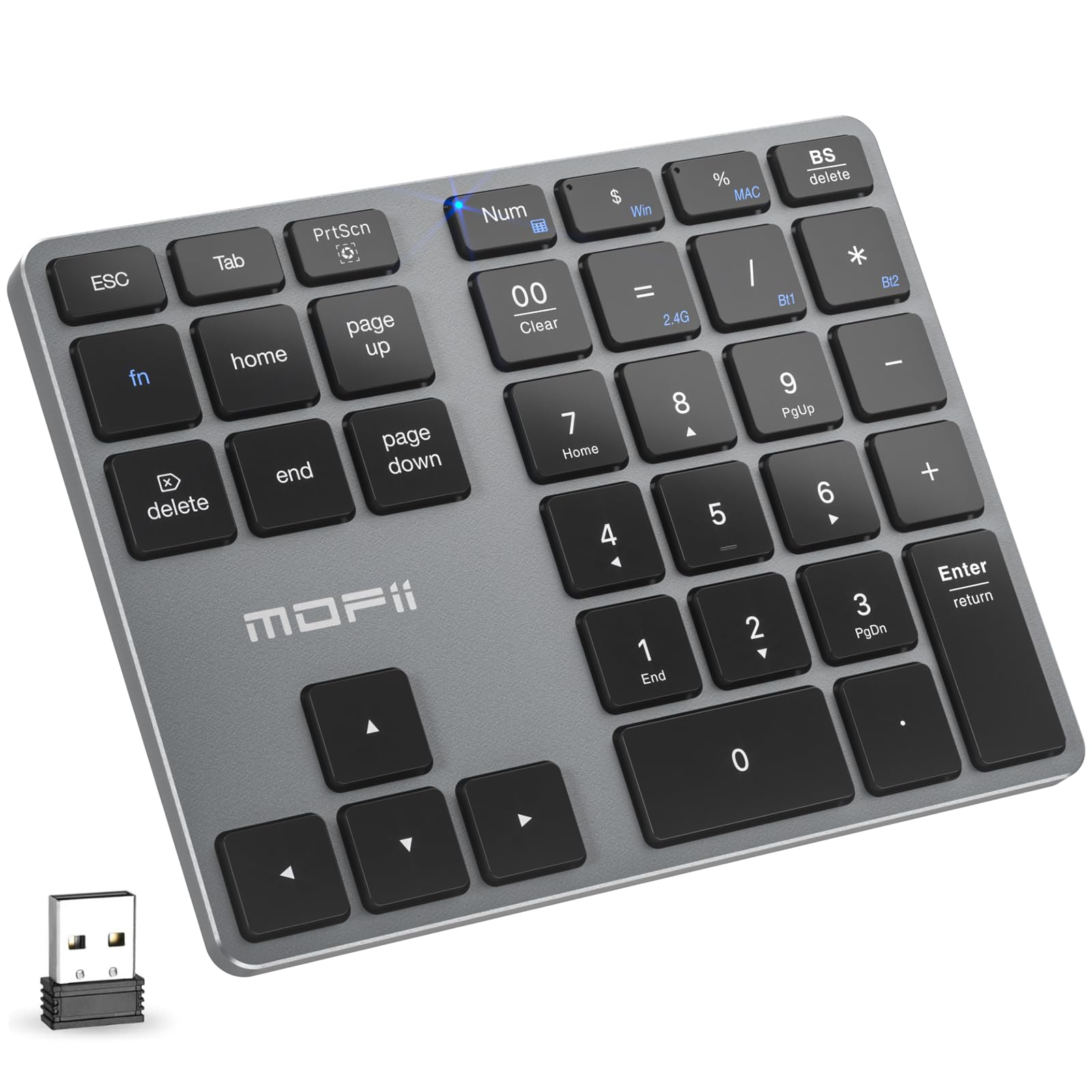 MOFII Bluetooth Number Pad for Laptop - Gray Wireless Numeric Keypad 35 Keys USB-C Rechargeable Numpad, Accounting Portable Financial Data 10 Key for