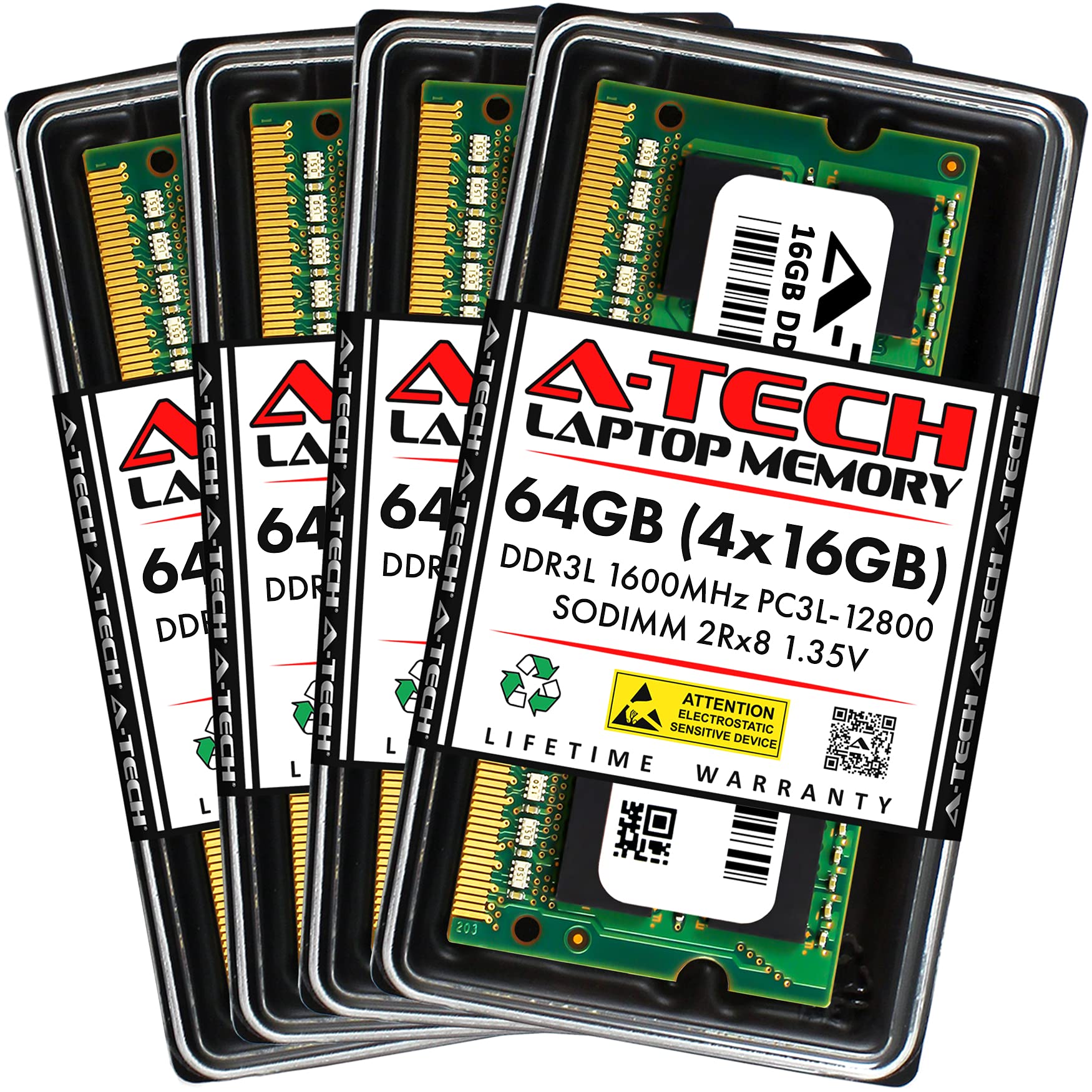 A-Tech 64GB (4x16GB) DDR3L 1600 MHz SODIMM PC3L-12800 (PC3-12800) CL11 DDR3 2Rx8 1.35V Laptop RAM Memory Modules