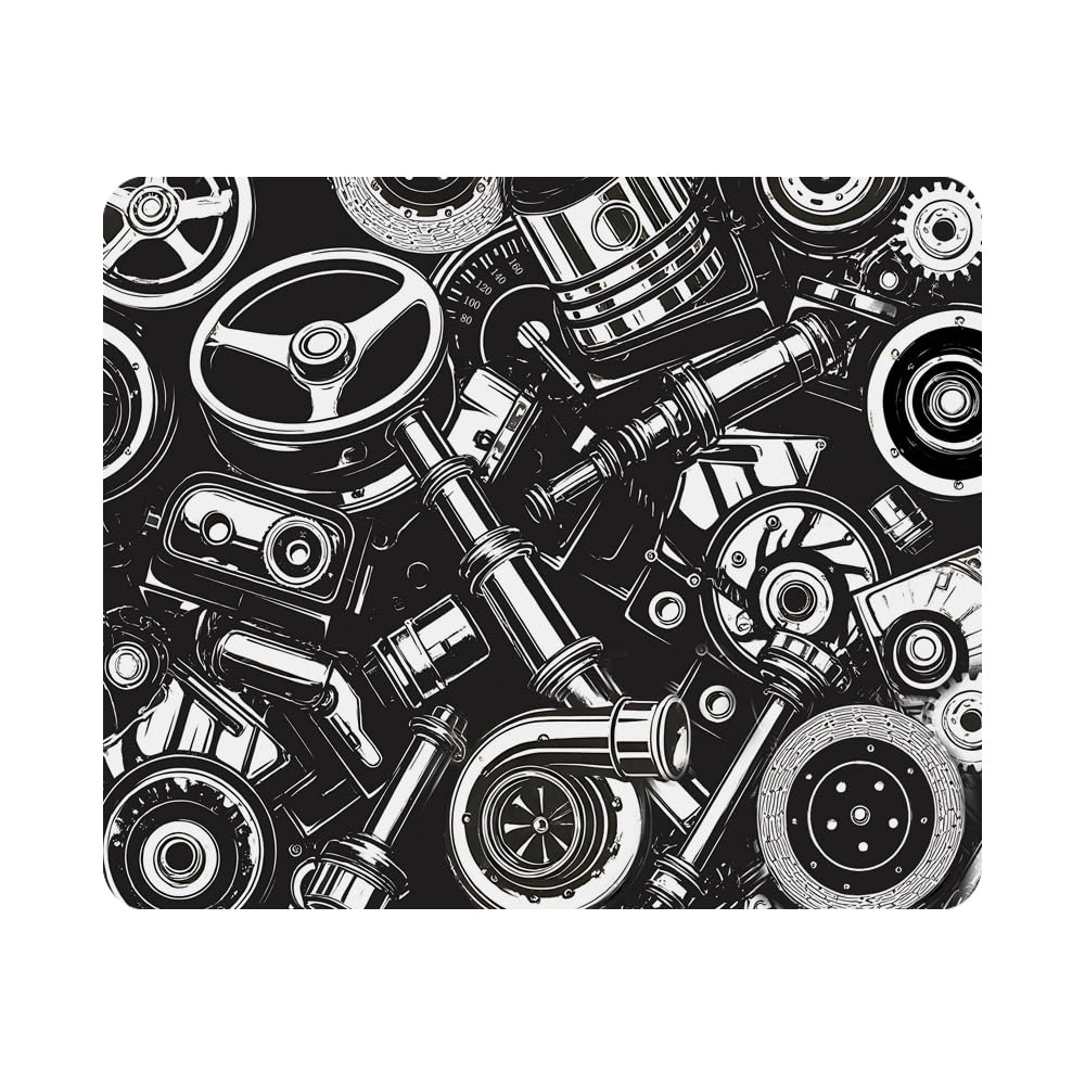 Nicokee Gaming Mouse Pad Pattern Automobile Car Parts Monochrome Black and White Auto Automotive Non-Slip Rubber Mouse Pad for Computers, Laptop,