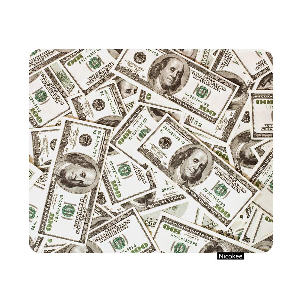 Nicokee Funny US Dollar Currency Money Gaming Mouse Pad Hundreds of 100 Dollar Bills Non-Slip Rubber Mouse Pad for Computers, Laptop, Office, Home