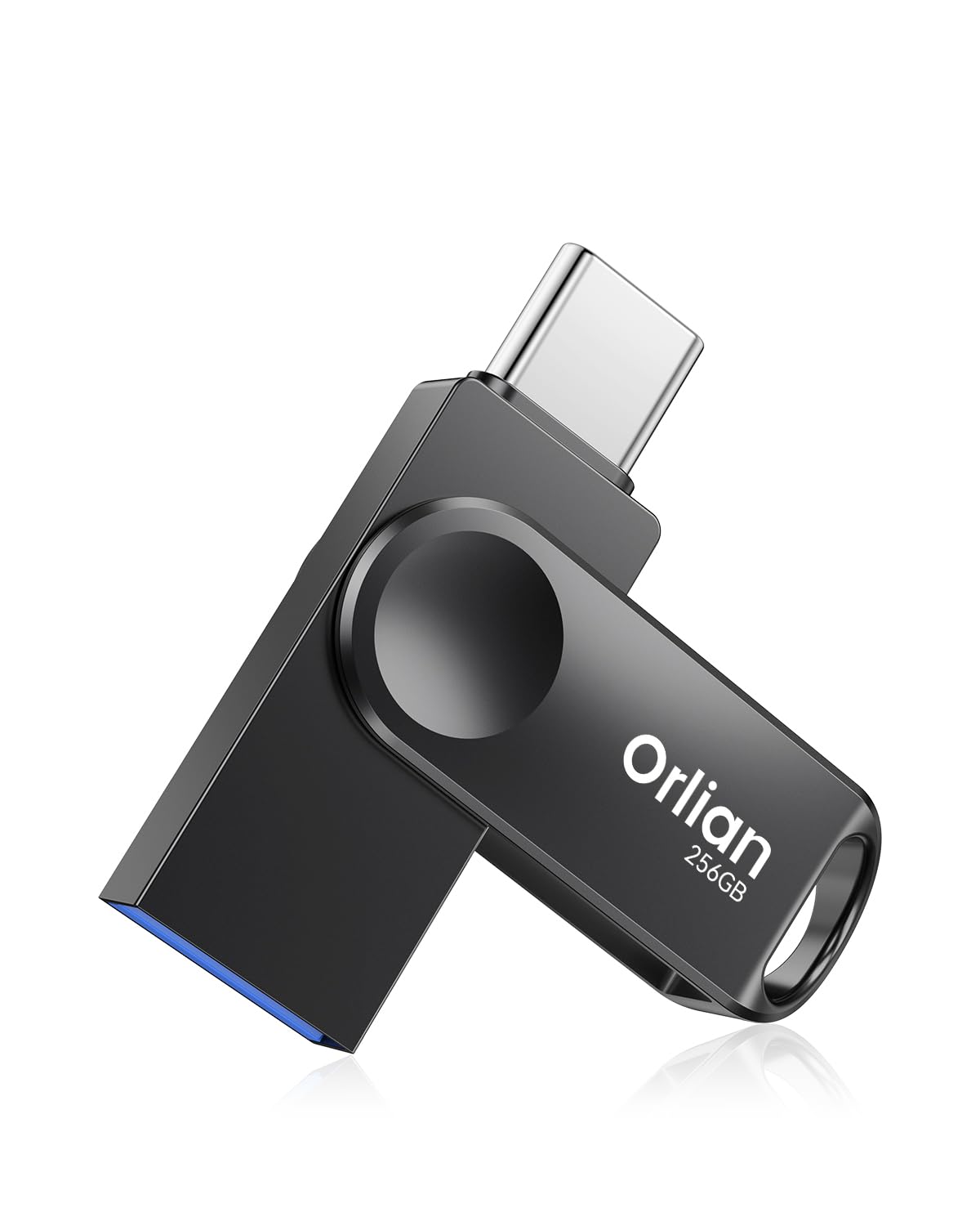 Orlian 256GB USB C Flash Drive for Phone, up to 110MB/s Dual USB 3.0 Phone Thumb Drive Type-C & USB-A, Metal Waterproof Swivel Memory Stick for iPhone