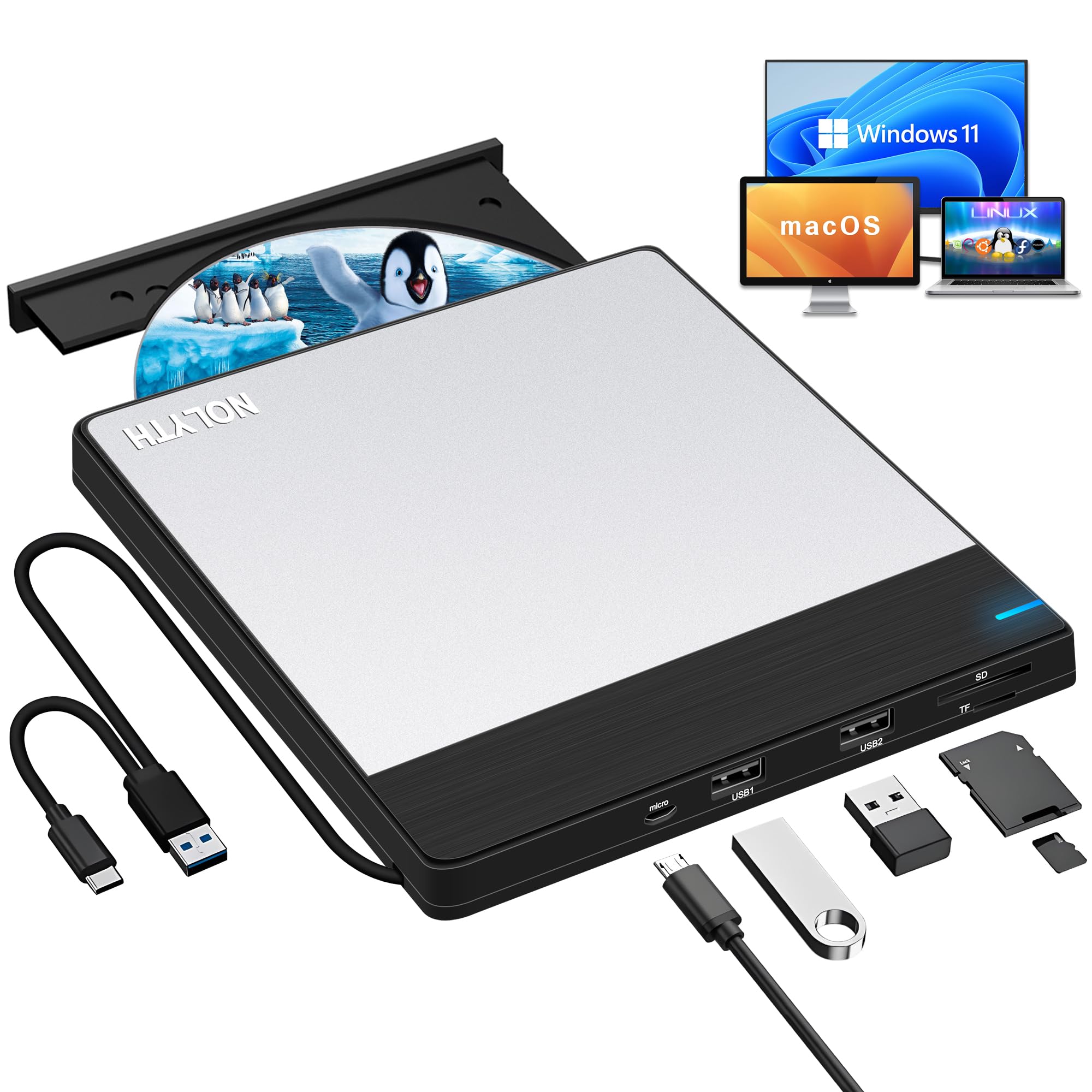 Plug and Play on Mac and Windows: This external CD/DVD drive for laptop has USB-C and USB 3.0 connectors and supports the fastest read/write speeds for both CDs and DVDs. Simply connect it to your Mac, MacBook Pro/Air or Windows computer and it will be automatically detected, allowing you to play th