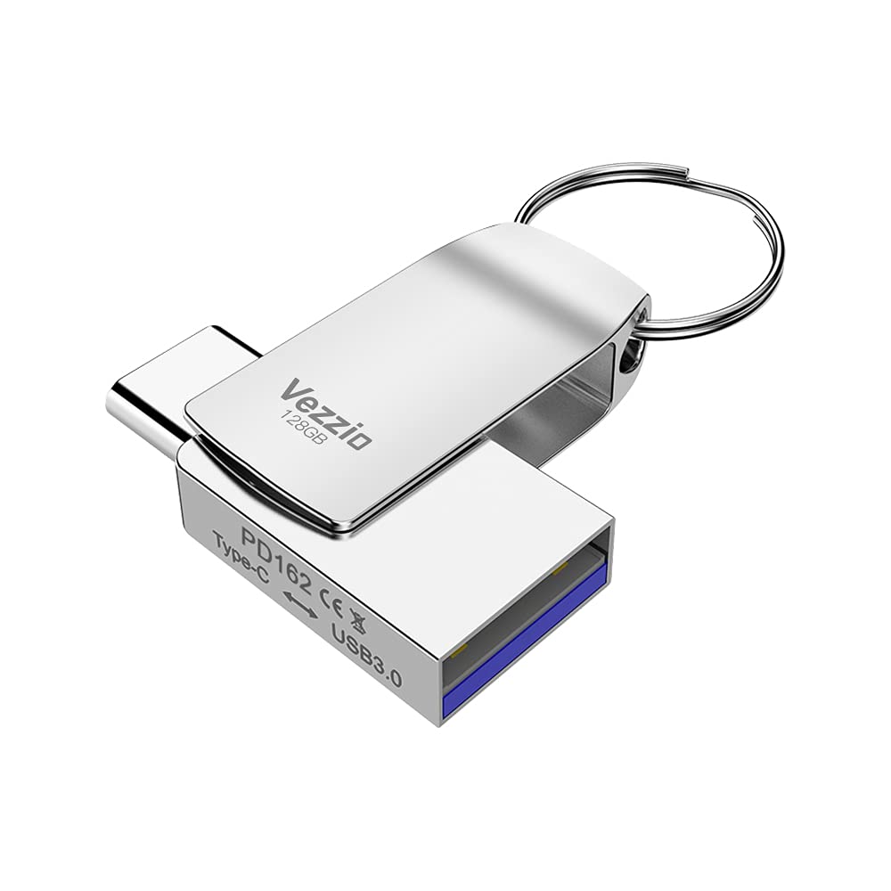 VEZZIO Type C USB Flash Drive, 2 in 1 Dual Port USB3.0 Memory Stick High Speed for Mobile Phone Computer Mac Book USB c Drive (128GB)