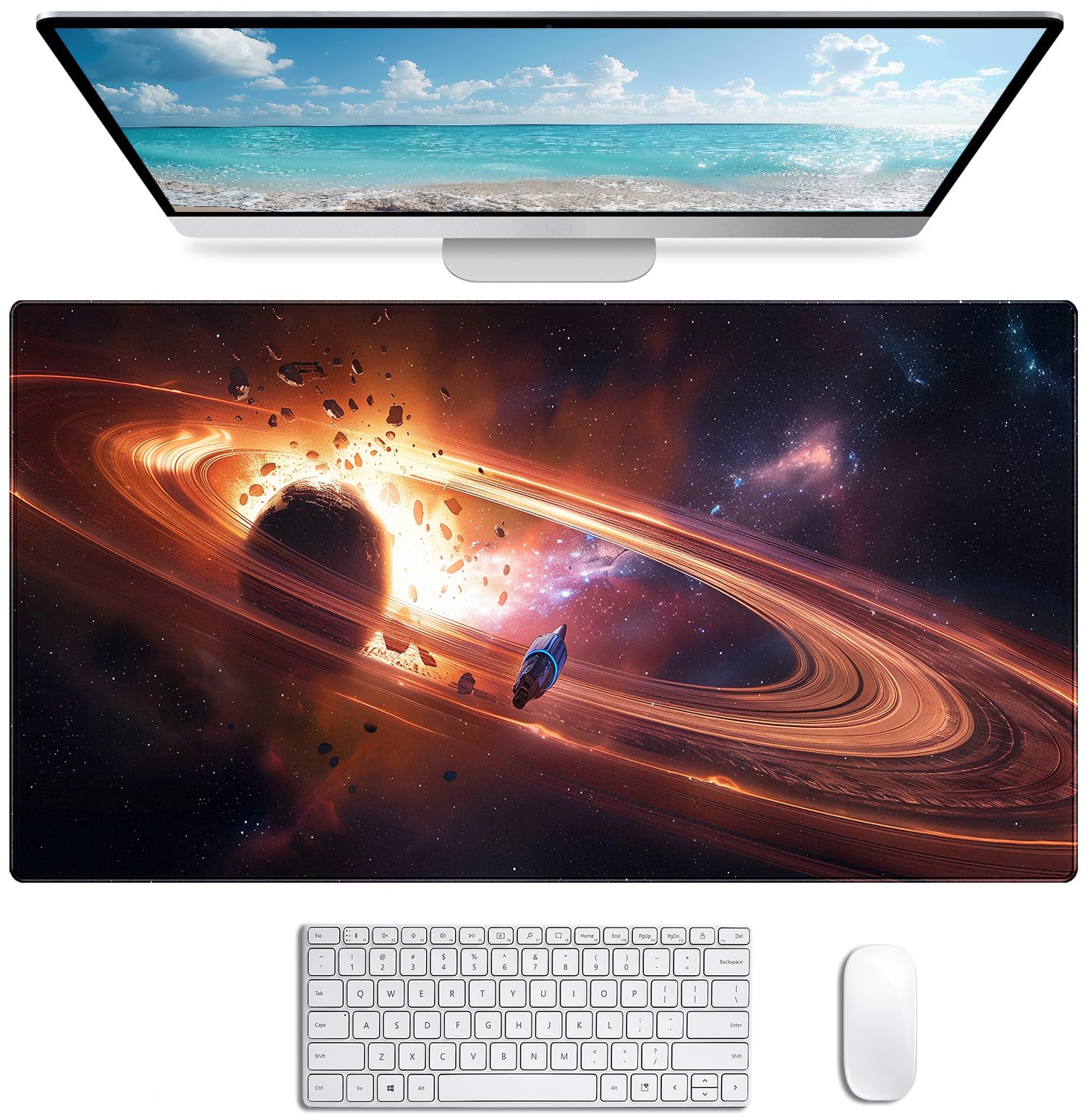 Personalized Galaxy Starry Sky Nebula Customized Computer Keyboard Office Desk Pad, Cute Space Planet Full Table Extended Mouse Pad 35.4 x 15.7 Inches