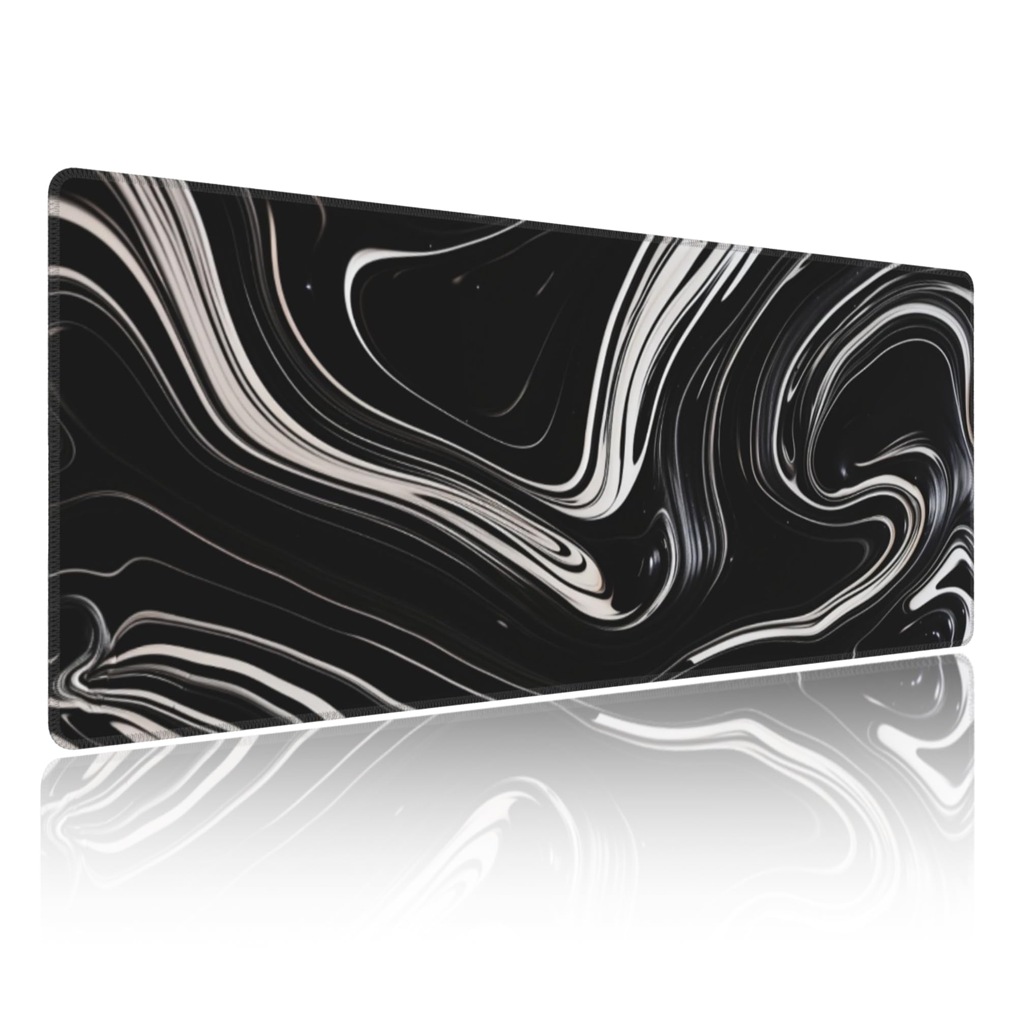 Gaming Mouse Pad Black Marble Fluid Abstract Non-Slip Rubber Base Extended Mousepad with Stitched Edges Keyboard Computer Laptop Mat for Gamer Desktop