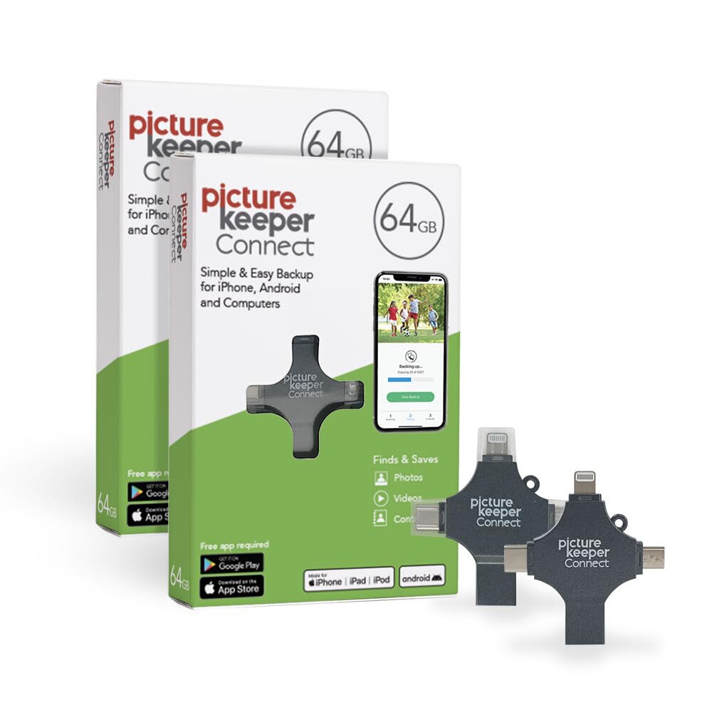 Picture Keeper Connect Photo & Video USB Flash Drive for Apple, Android and PC Devices, 64GB Thumb Drive, 2 Pack