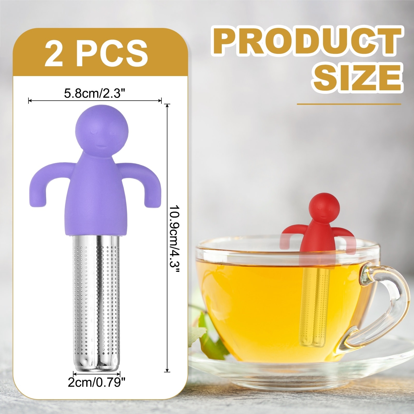 Description: Durable Material: This tea infuser is crafted from safe silicone and 304 stainless steel, ensuring it withstands reliable daily use. The mesh filter is rust-proof, scratch-resistant, and drop-resistant, so it remains reliable over time.
