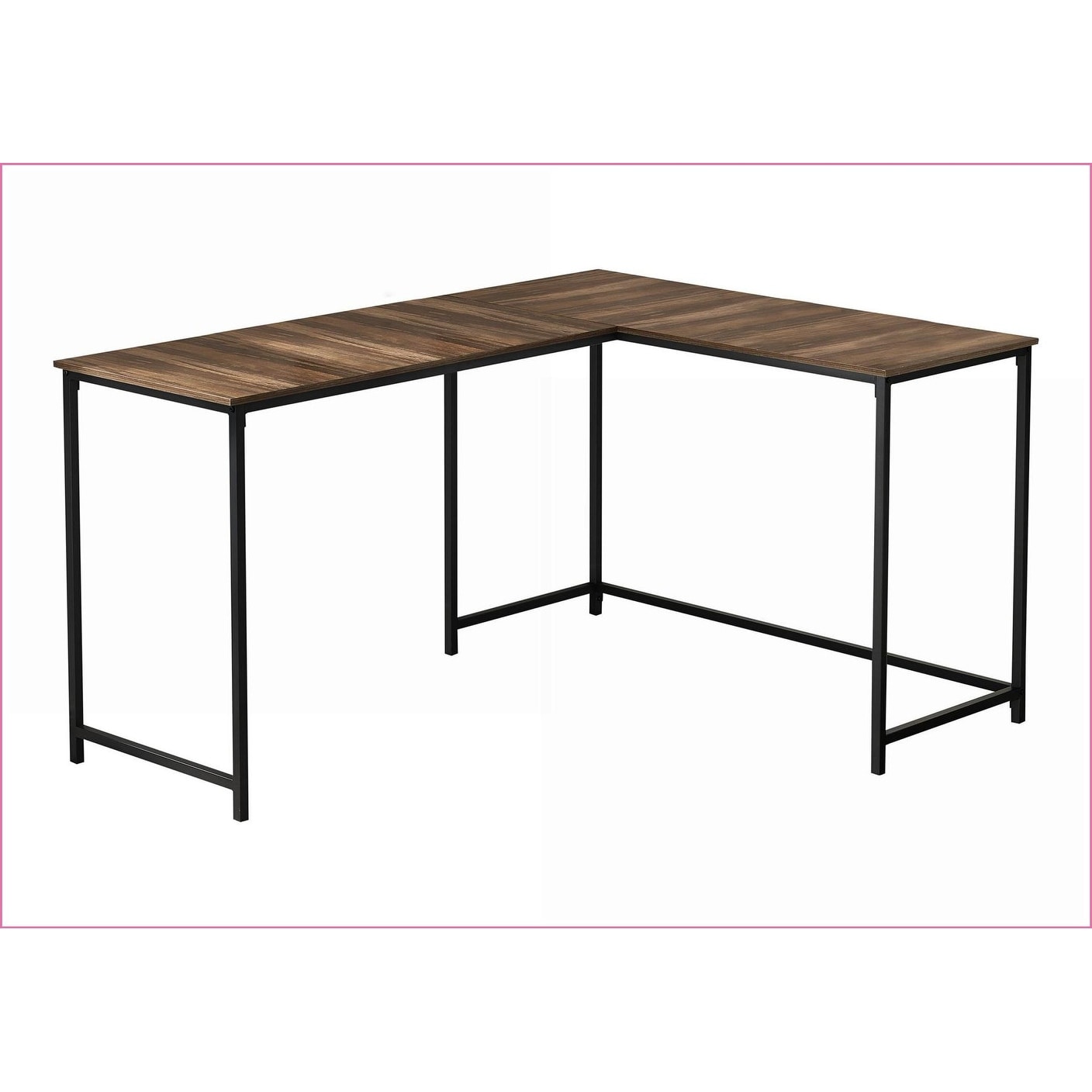 Desks, L-Shaped Corner 58in Home Office Computer Desk, Modern, Brown Laminate Black Metal, Brown, Particle Board