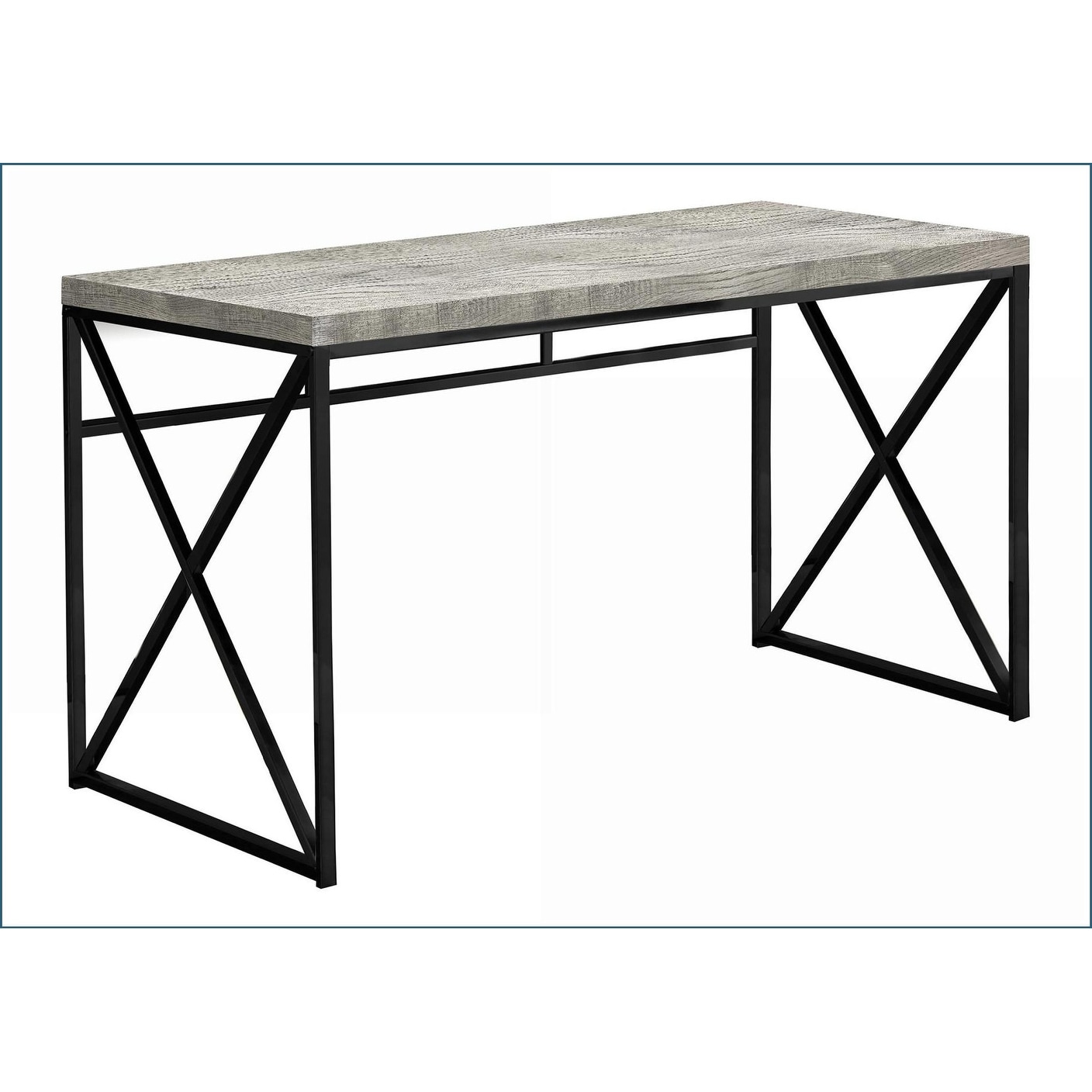 Desks, Contemporary Home Office Laptop Desk, 47in L Grey Laminate Top, Black Metal Base, Grey, Particle Board