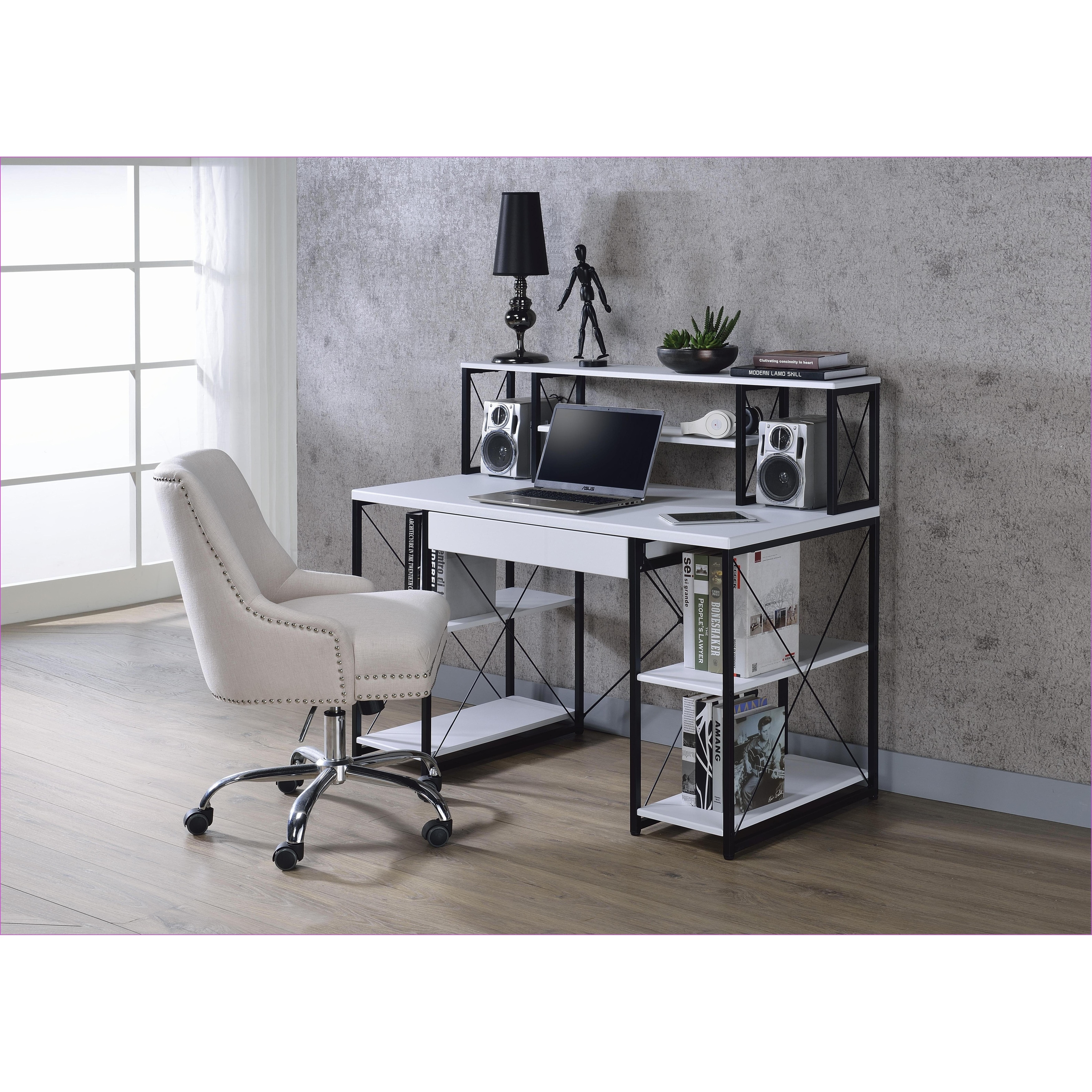 Desks, Industrial Rectangular Writing Desk with Antique White and Black Finish, Metal, Synthetic Wood