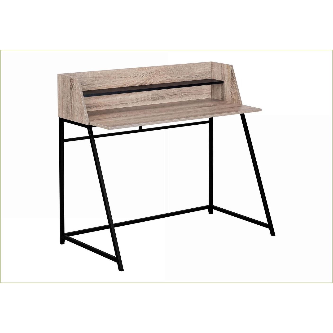 Desks, 48in Modern Home Office Computer Desk, Brown Laminate Top, Black Metal Base, Taupe, MDF