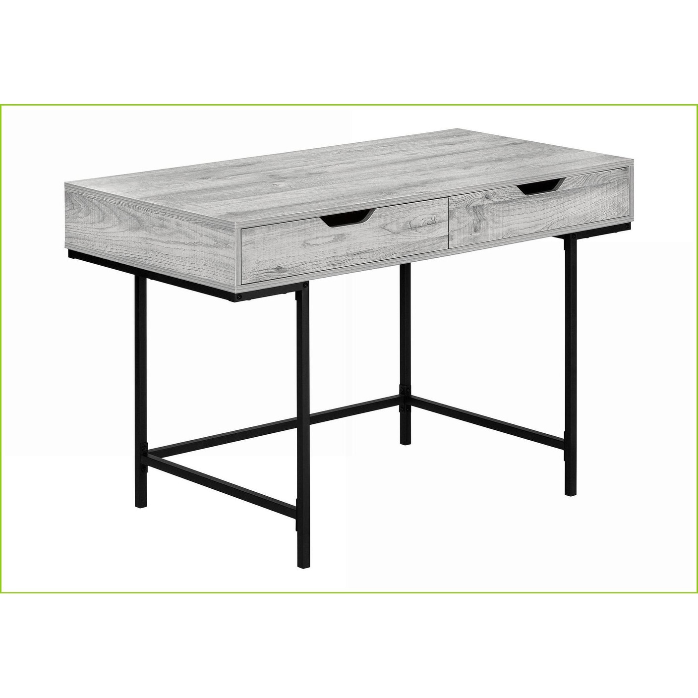 Desks, 48in Modern Computer Desk with 2 Storage Drawers, Grey Laminate and Black Metal, Grey, Particle Board