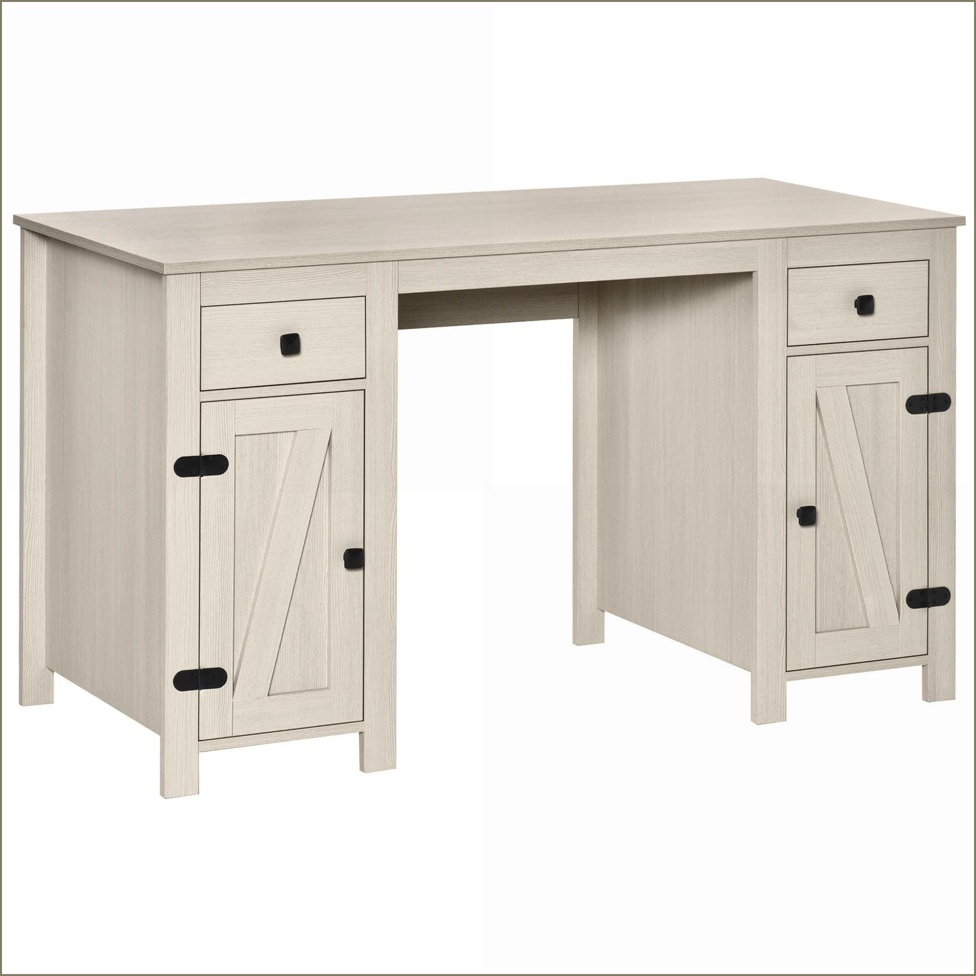 Desks, Farmhouse Computer Desk with Storage Drawers and Cabinets, Cream White, MDF, 52.25inL