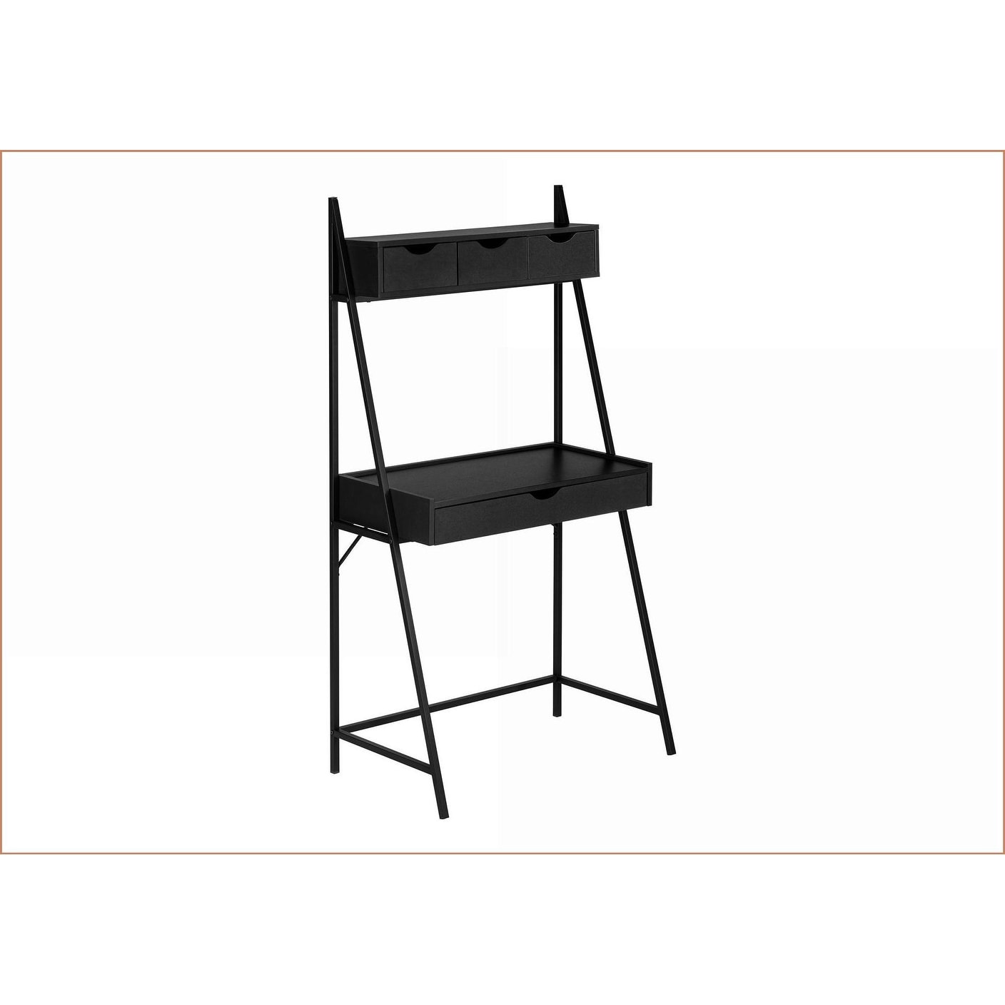 Desks, Modern Leaning Computer Desk with Storage Drawers, 31.5in W Black Laminate, Black Metal