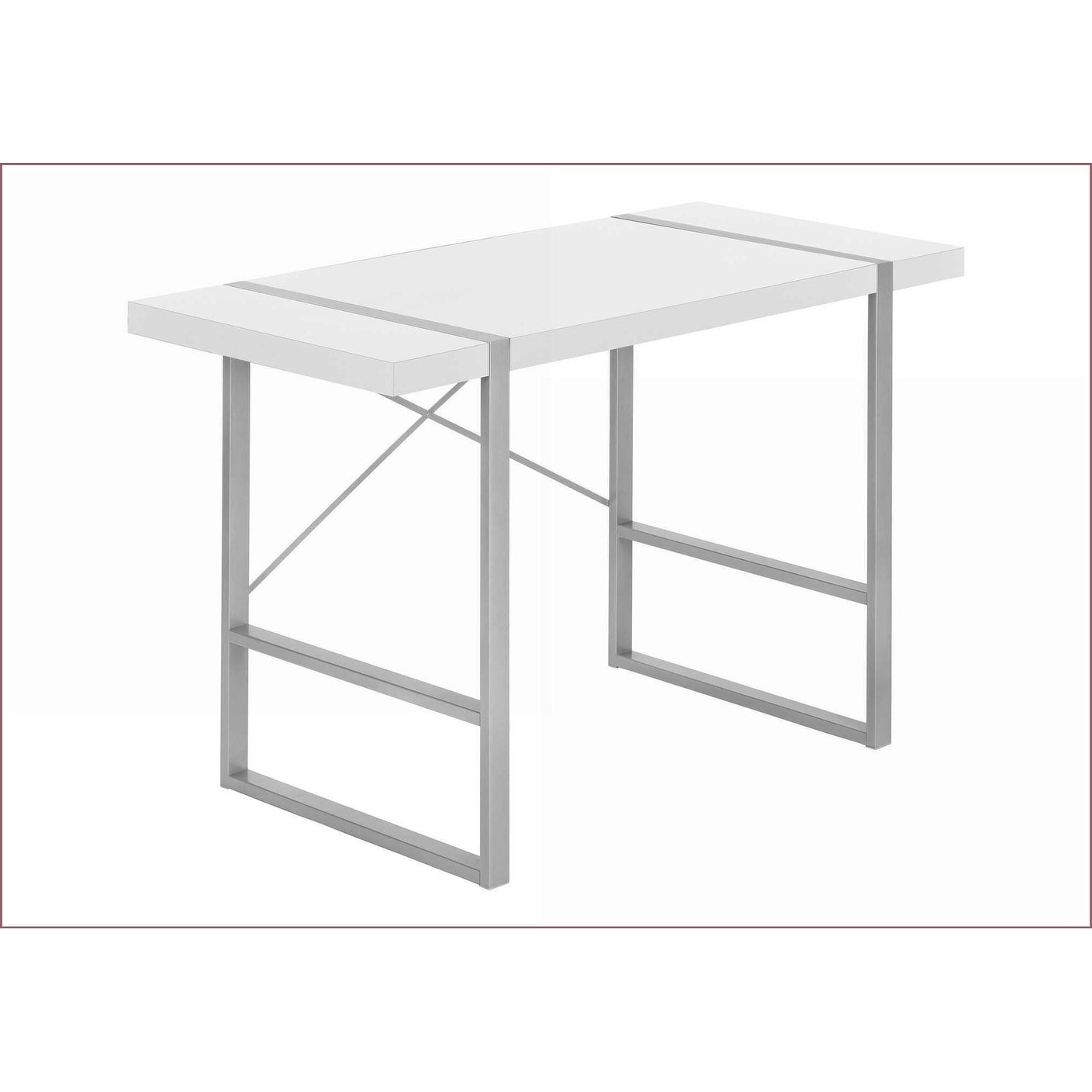 Desks, Tennos Modern White Writing Desk with Chrome Metal Frame and X-Shape Cross Bar, White, Metal,Synthetic Wood