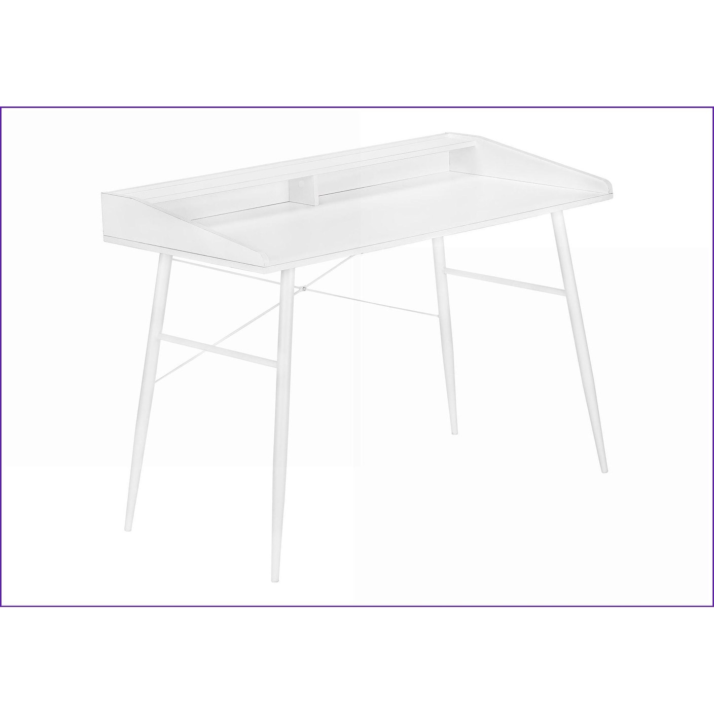Upgrade your home office with this sleek white computer desk! The 47.25" long surface gives you plenty of room for your laptop, monitor, and work supplies—no more cluttered spaces.