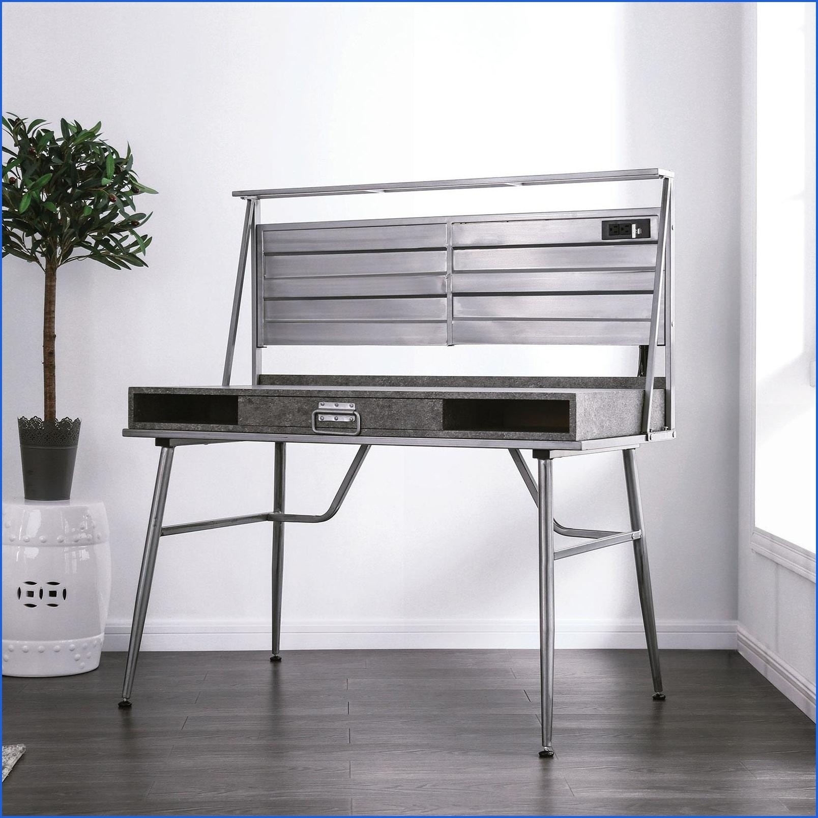 Desks, Rustic Industrial Weathered Oak and Antique Silver Metal Writing Desk with 3 Drawers and 2 Shelves