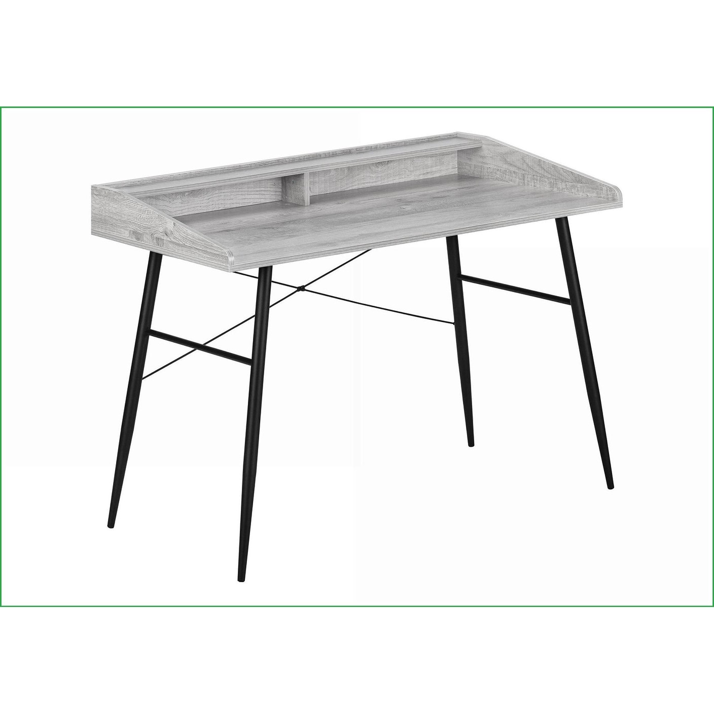 Desks with Storage Shelves and Cubbies, 48in L Modern Computer Desk, Grey Laminate Black Metal, Grey, Particle Board