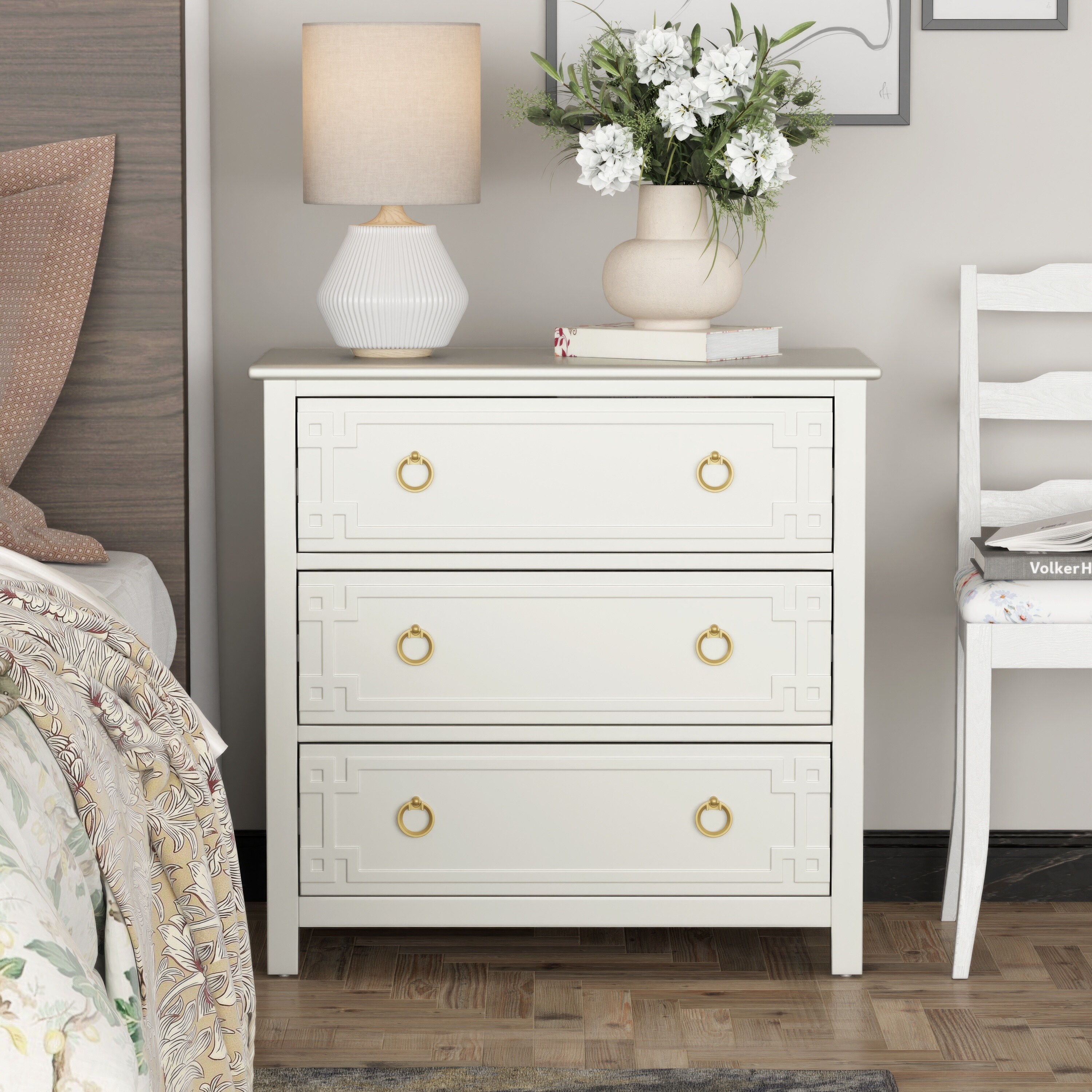 COZAYH Farmhouse 3-Drawer Dresser, Rustic Chest of Drawers with Embossed Geometric Lines, French Country, Fully-Assembled