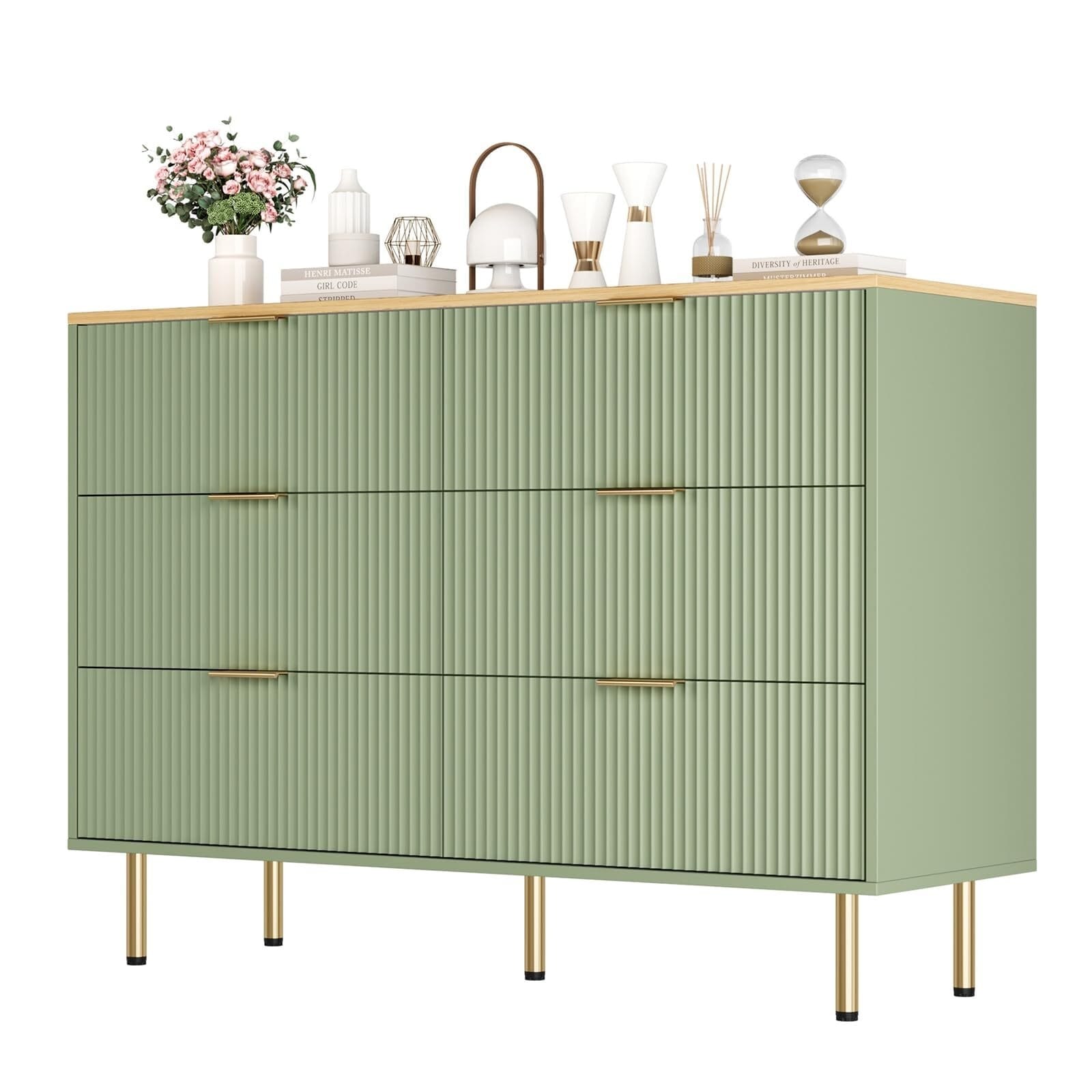 6 Drawers Dresser for Bedroom,Fluted Dresser Chest of Drawers