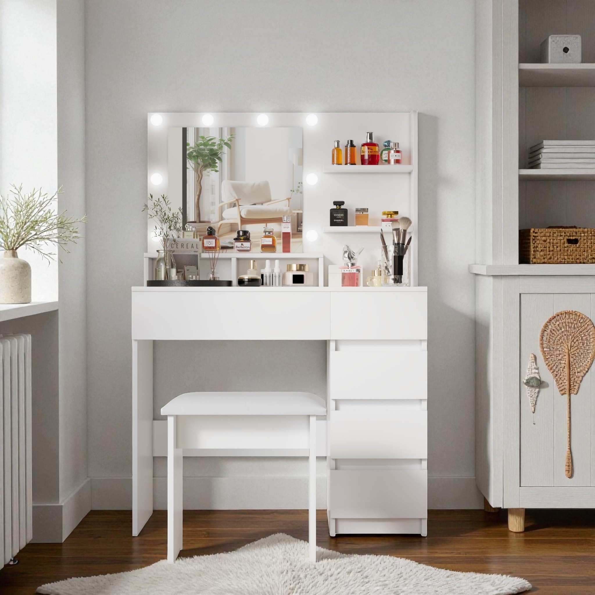 Product Overview This Hollywood-style vanity desk with lights combines functionality, elegance, and convenience in one beautiful piece.
