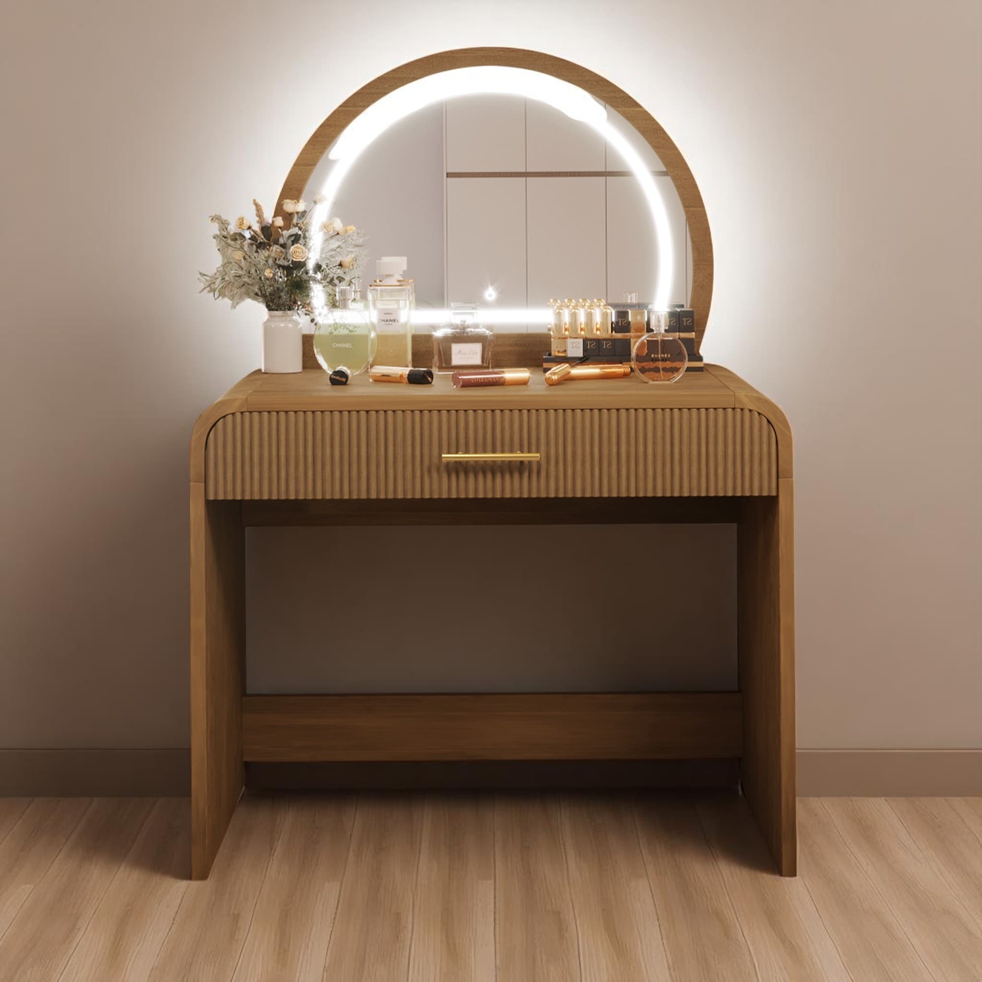 39" Espresso Makeup Vanity Desk with Touch LED Mirror, Drawer Storage & Curved Edges - Dressing Table for Bedroom