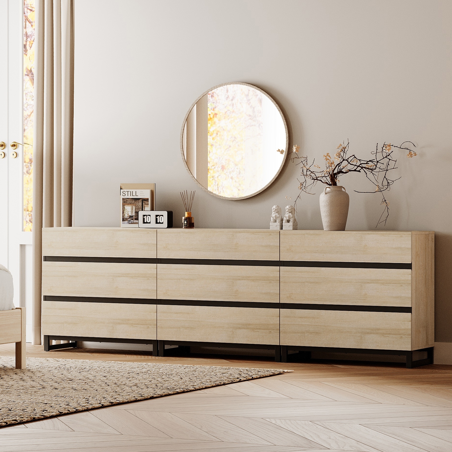 CHIC DESIGN: Our dresser adopts a unique cabinet leg design, the solid cabinet legs at the bottom ensure overall stability, and the chic design creates a visually striking and stylish cabinet.
