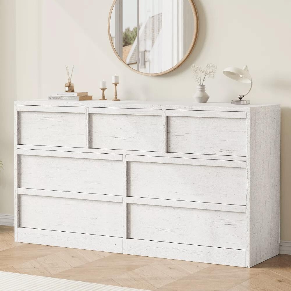 8 Drawer Modern Dresser, Wide Storage Chest for Bedroom, Gaming Setup or Makeup Vanity, White