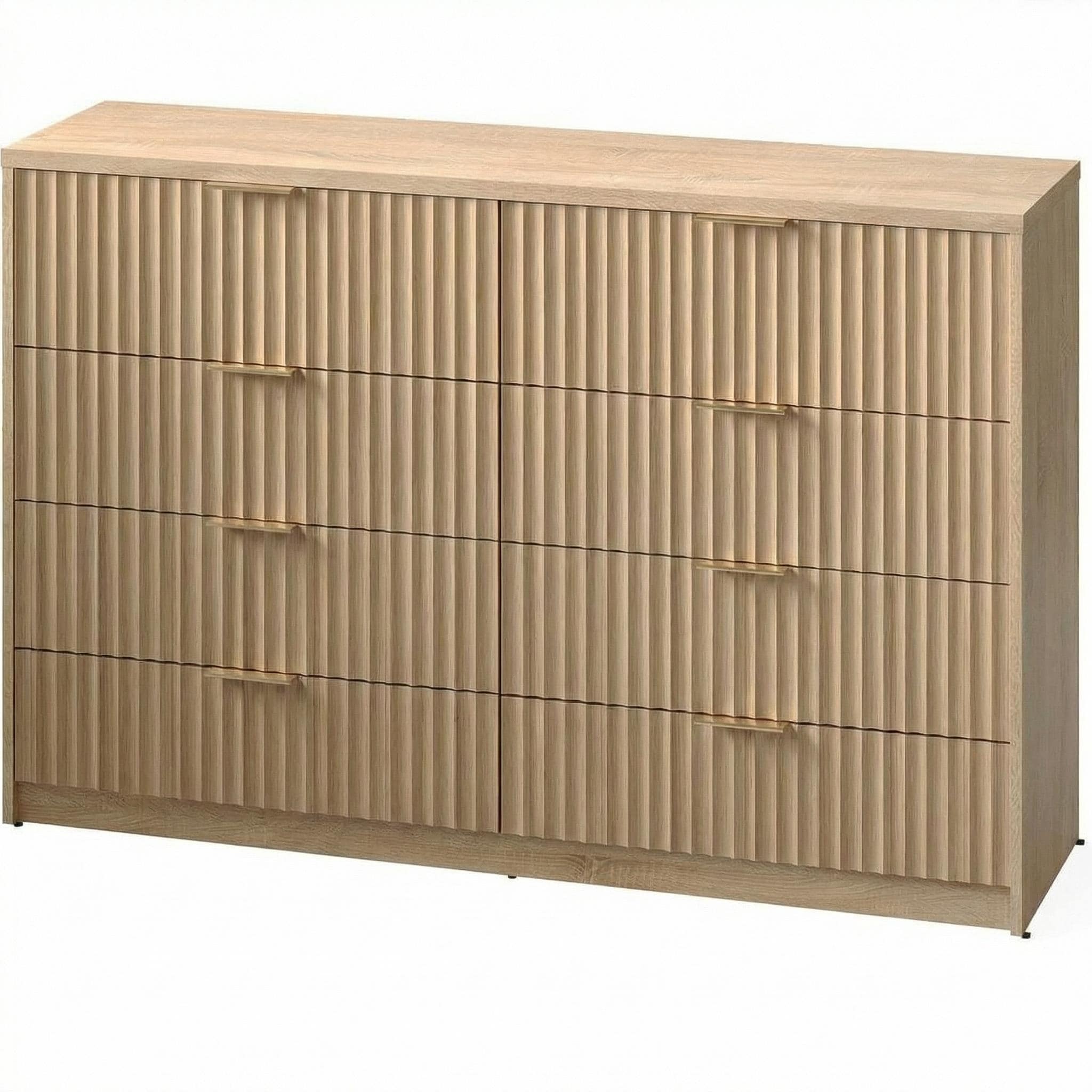 9 Drawer Fluted Dresser, Modern Wood Chest with Gold Handles Storage Cabinet