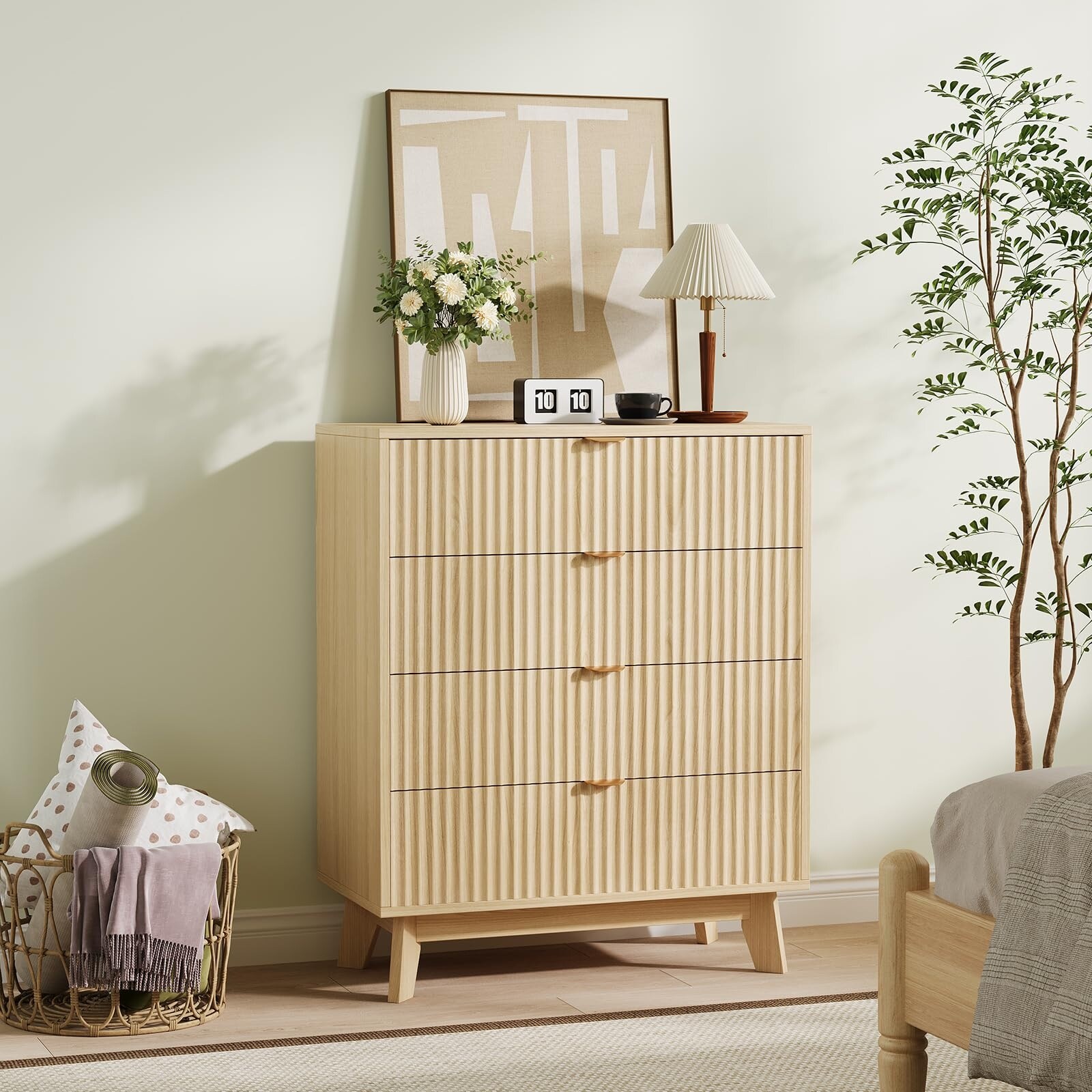 Fluted 3/4/5 Drawer Dressers for Bedroom, Modern Wooden Chest of Drawers