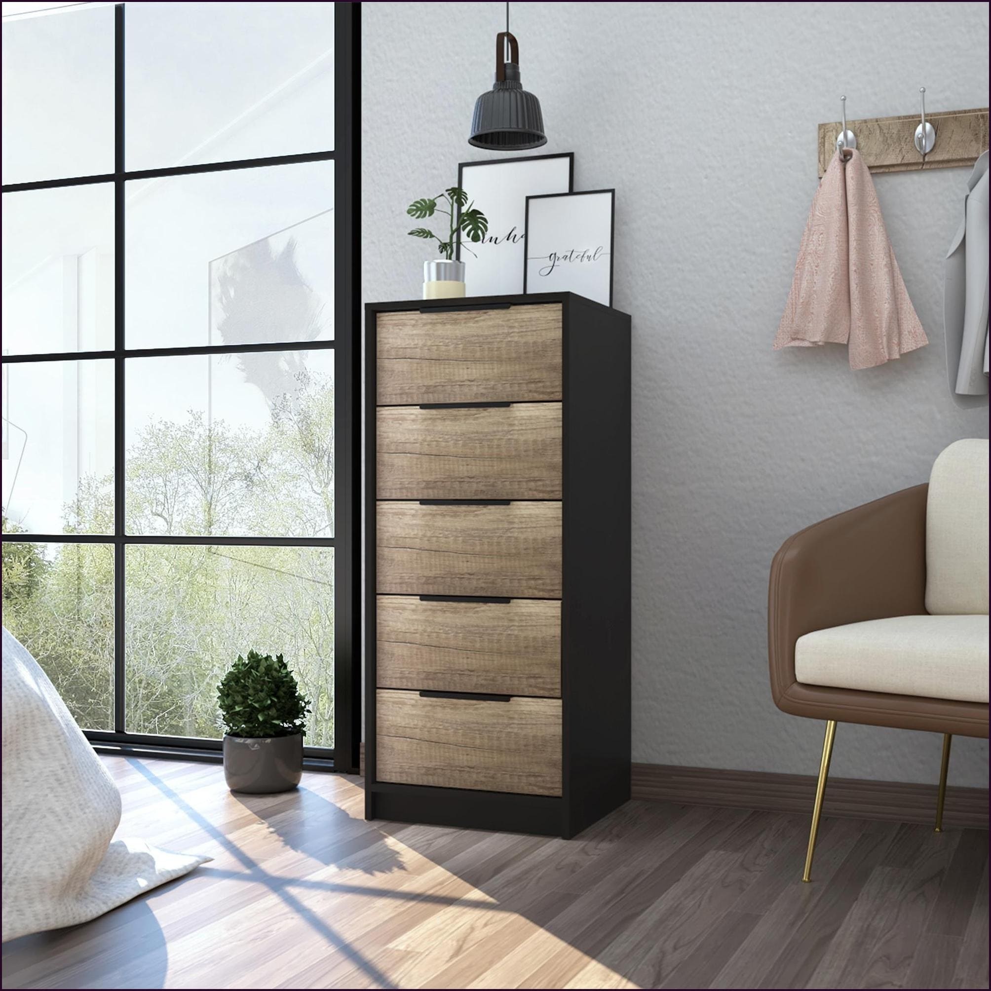 Dressers, Kaia 5 Drawer Vertical Slim 42in High Dresser, Black,Pine, Particle Board, Multicolor