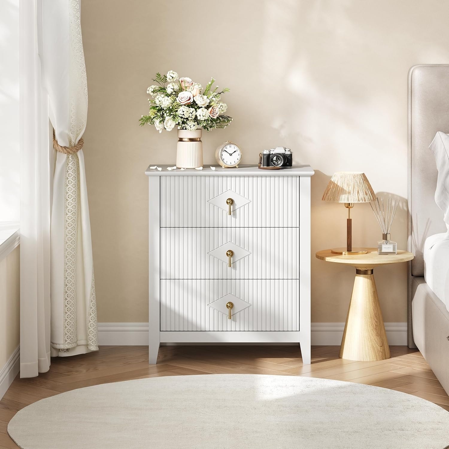 3 Drawer Fluted Dresser for Bedroom, Modern Chest of Drawers for Living Room