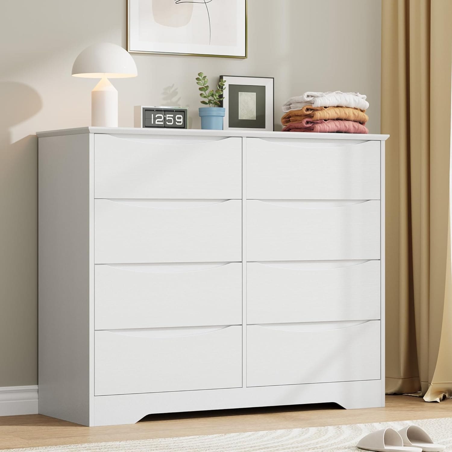 【Unique Wooden Dresser】Our integrated hidden handle fits seamlessly into the drawer surface and the sleek, curve-shaped design lets you open drawers with just a gentle pull.