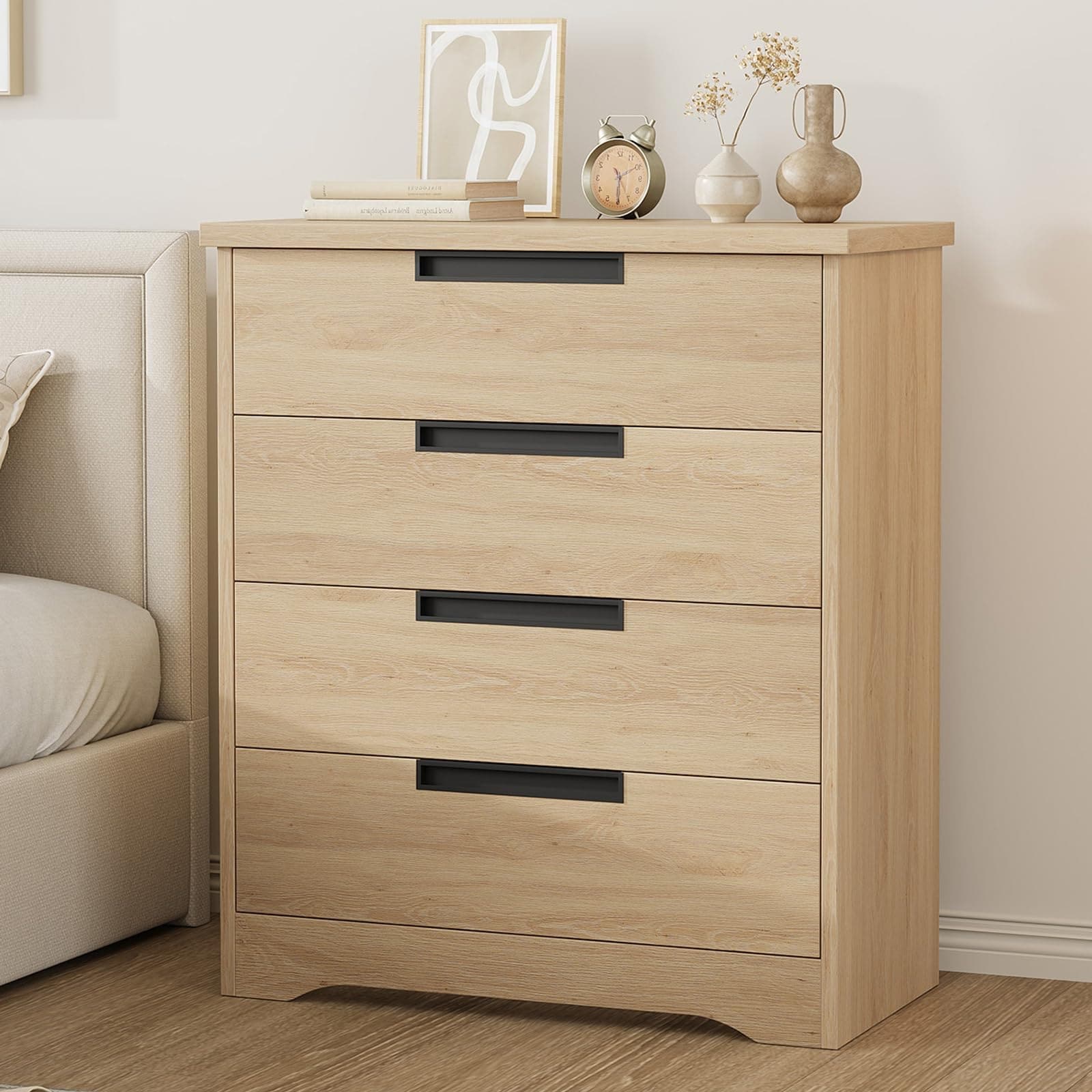 4-Drawer Dresser with Embedded Handles, Wooden Storage Organizer for Living Room, Nursery, Hallway or Entryway