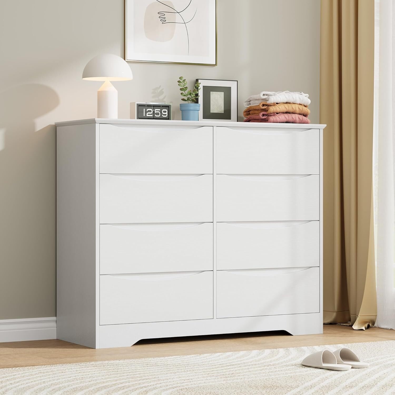 8 Dresser Chest,Fluted 8 Drawer Storage Dresser for Bedroom
