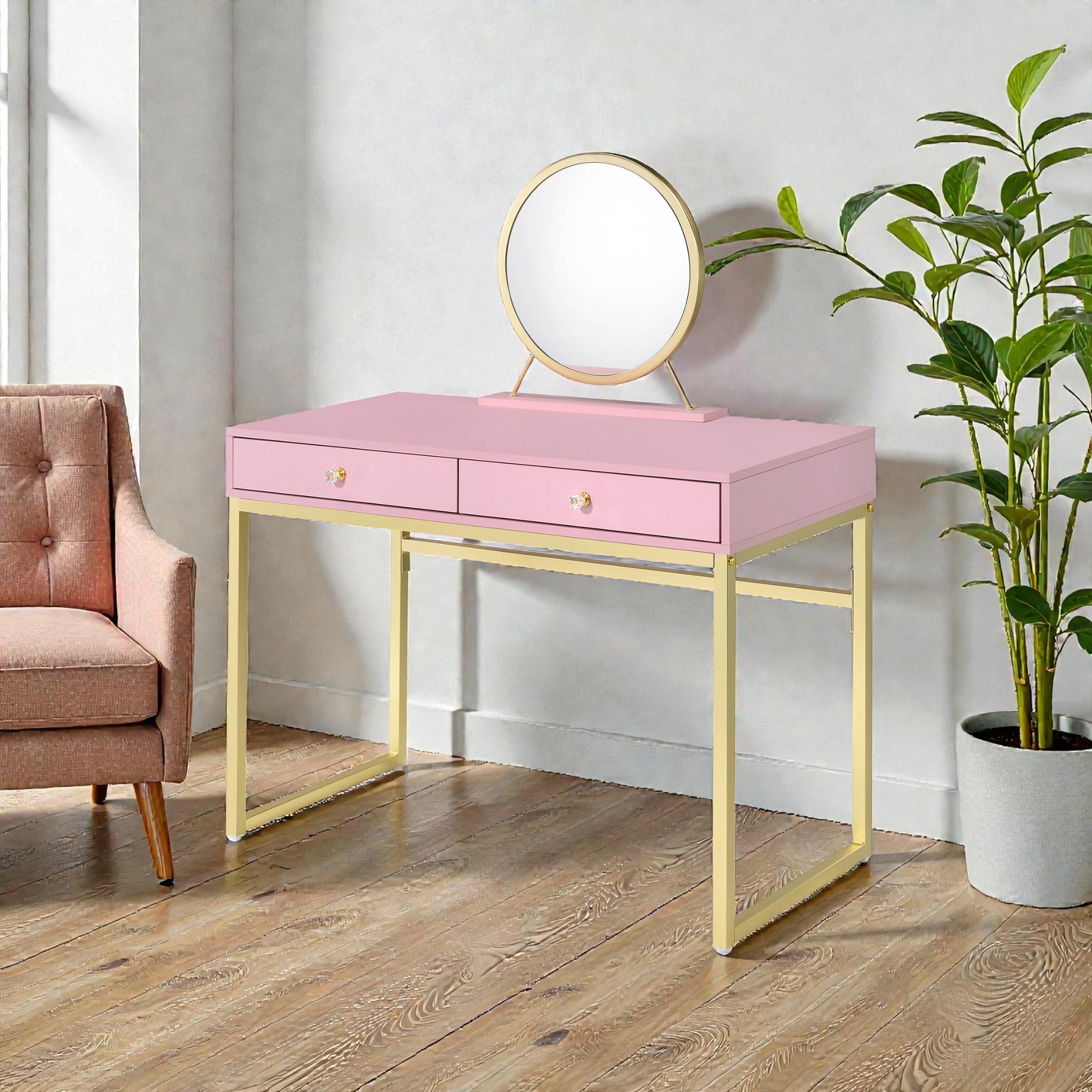 Product Overview This rectangular vanity desk is designed to combine elegant styling with everyday functionality.